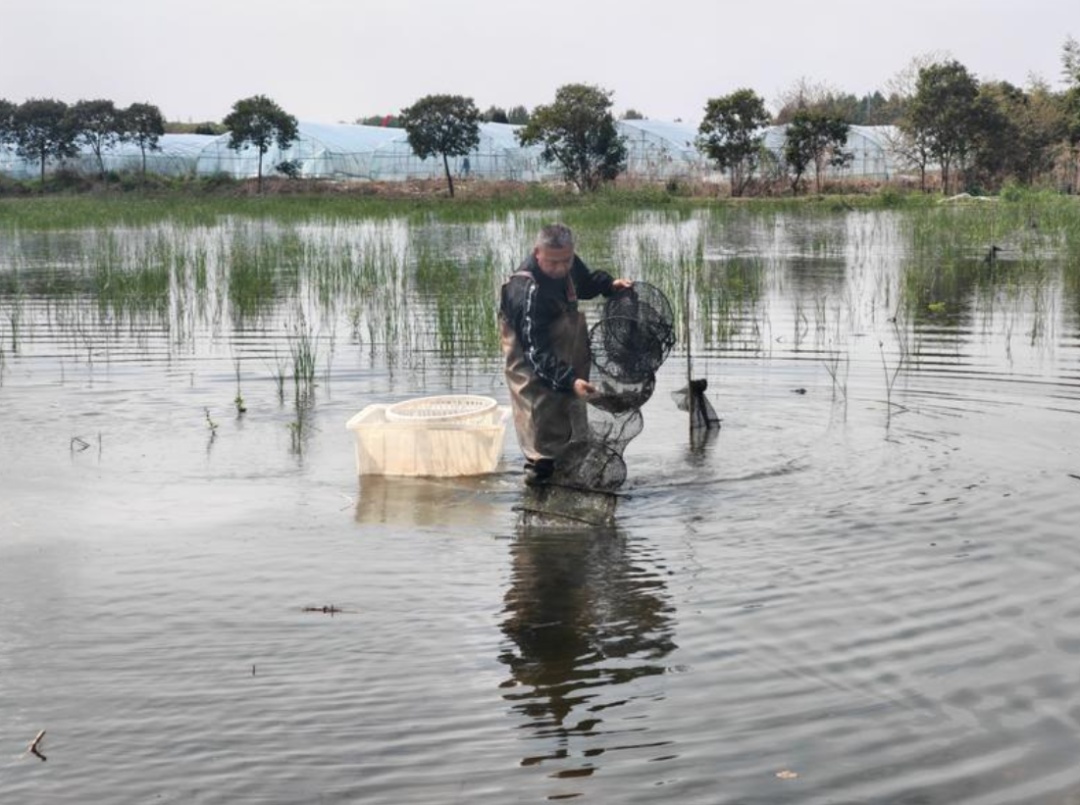“张泾河水好,养出来的虾就好。”李仁兵说这话时语气笃定。除了水质,他在饲料上也舍得投入——坚持用大品牌高蛋白饲料。他随手捞起一筐虾,捏一捏虾壳、闻一闻气味:“你闻,没有土腥味,肉非常紧实。”和市面上常见的小龙虾相比,仁滨合作社的虾更干净、更鲜甜。有人问秘诀,他笑笑:“水好、料好、人勤快,缺一不可。”