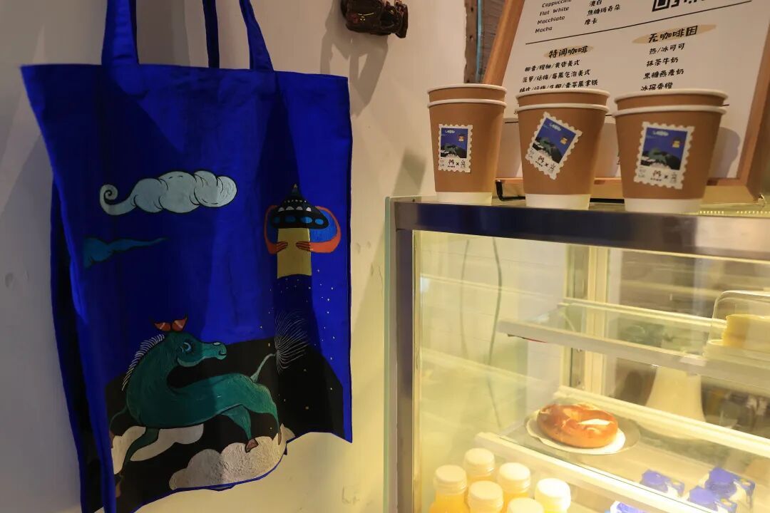 《梦马》这幅作品不仅呼应马年,也暗合“马门村”的地名,如今已被制成店内的限定特饮、帆布袋、贴纸等周边文创,将马门村在地文化进行艺术化和生活化延伸,成为可用、可品、可赏的生活方式。