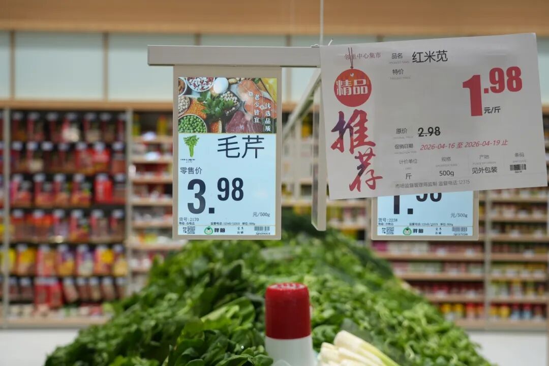 对于精打细算的爷叔阿姨来说,最动心的时刻是傍晚六点半。喇叭里亲切的提示音一响,一楼绿叶菜档口的电子价签齐刷刷“变脸”。鸡毛菜从白天的3.98元跳到了1.58元;白天卖3.98元的太湖菜,屏幕一跳成了2元;新鲜的马兰头从4.98元直接“腰斩”到2元。菜场负责人王峰岭告诉记者,这是改造后立下的规矩:绿叶菜和鲜肉绝不过夜,当天卖完。