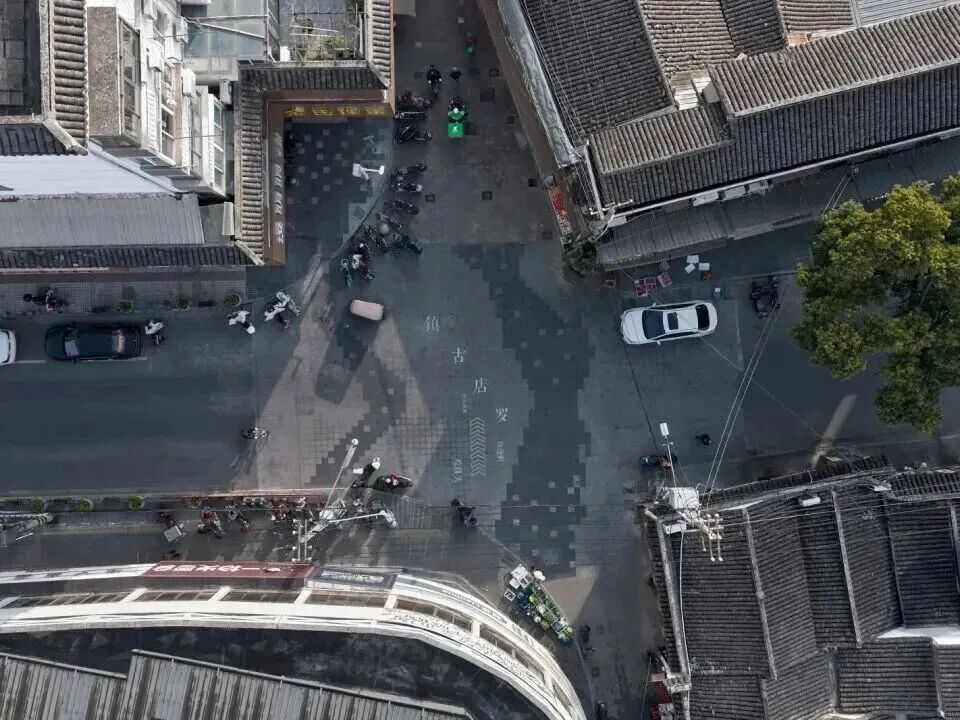 作为古镇门户枢纽的花神流芳,以“整而不同”为原则,逐户优化商户风貌,既实现整体格调的统一,又保留每家店铺的独特韵味;同时梳理场地高差、规范停车秩序,打造无障碍通行空间,让古镇门户既清爽有序,又便捷暖心,成为迎接八方宾客的第一道温柔印记。