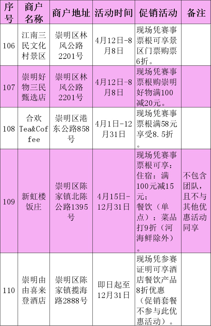 本次新增26家,持续深化文商旅体展农联动,转赛事流量为消费增量,充分激活崇明生态消费市场。