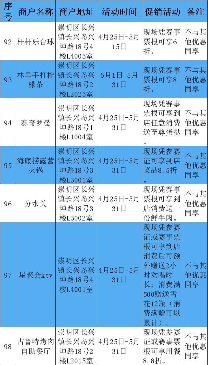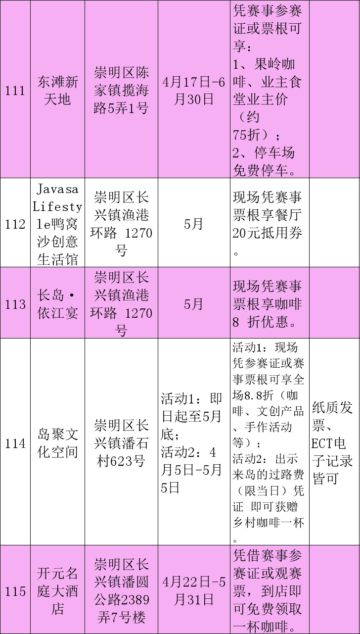 首场比赛在崇明M515实现赛事融入商圈,以乒乓球撬动文商旅体展农融合发展,票根消费福利落地见效,“一票回本”的票根经济成功激活区域活力。下一场赛事将走进长兴岛郊野公园,延续第一批89家商户票根惠民福利→《一票回本!解锁崇明89家商户消费福利(附优惠信息)》。