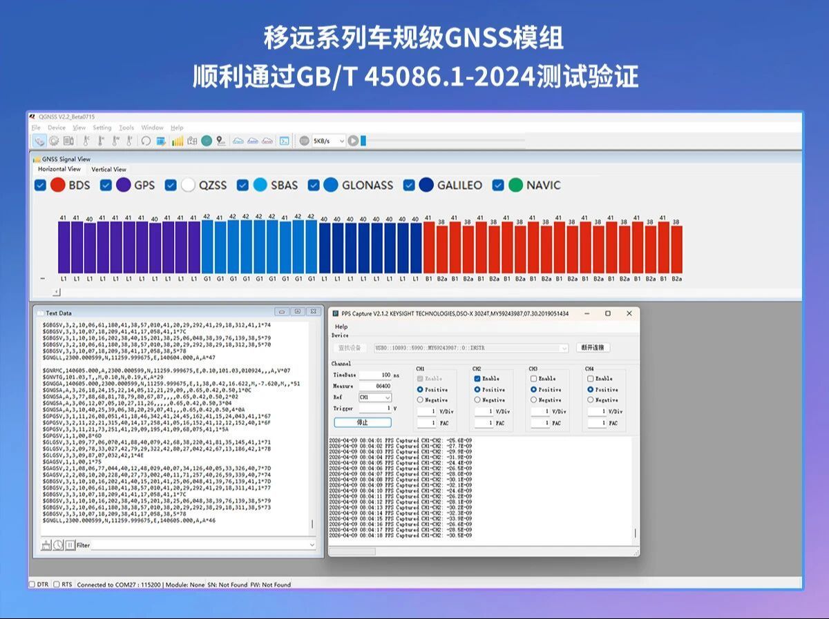 国内物联网龙头企业移远通信旗下多款车规级GNSS(全球导航卫星系统)模组,近日成功通过国家标准GB/T 45086.1-2024全面测试验证。该标准已成为车载定位产品进入市场的核心准入门槛,此次顺利通过验证,标志着移远通信在满足智能网联汽车严苛合规要求方面占据先发优势。