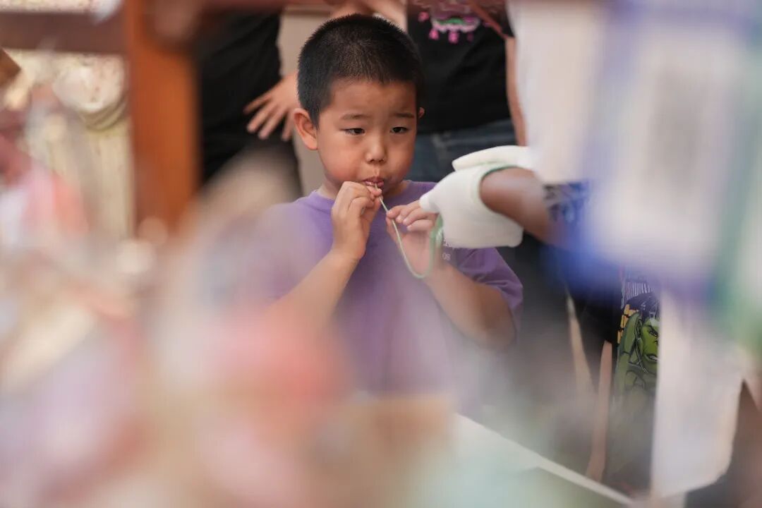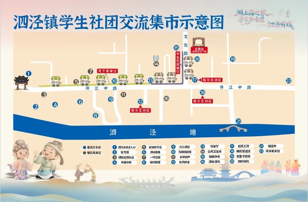 ①打卡集章礼品兑换:参与群众可到服务台领取集章卡,前往各摊位打卡体验,9个学校社团摊位设置有家乡知识问答活动,完成后可加盖带“泗泾有戏”元素的印章,集满7个印章可至服务台兑换小礼品,奖品数量有限,抢完即止。