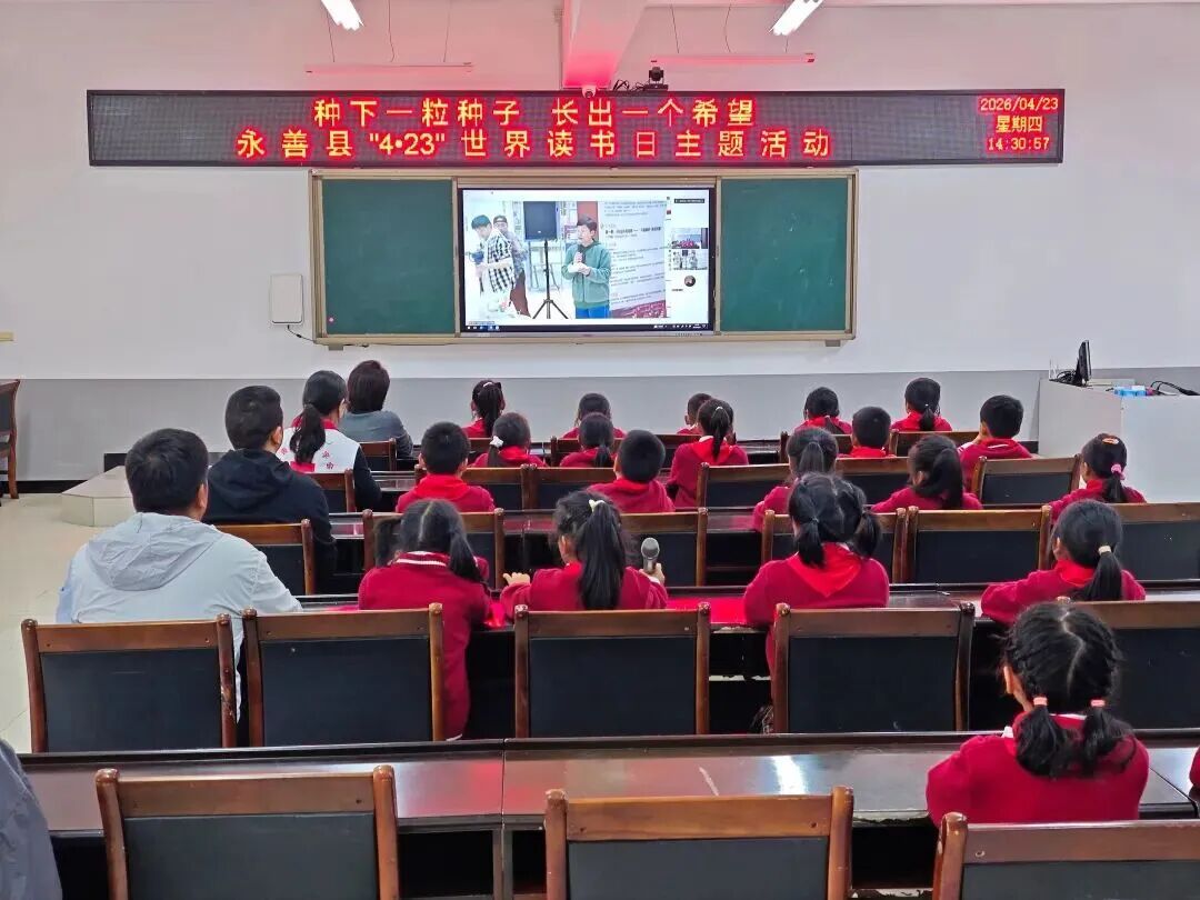 第31个“世界读书日”当天,永善县与上海市闵行区颛桥镇以视频连线的方式,在溪洛渡九年一贯制学校开展“4・23”世界读书日“种下一粒种子・长出一个希望”主题活动。永善县红十字会、颛桥镇学区各成员校联络员、上海市闵行区田园外语实验小学及溪洛渡九年一贯制学校师生代表共赴书香之约。