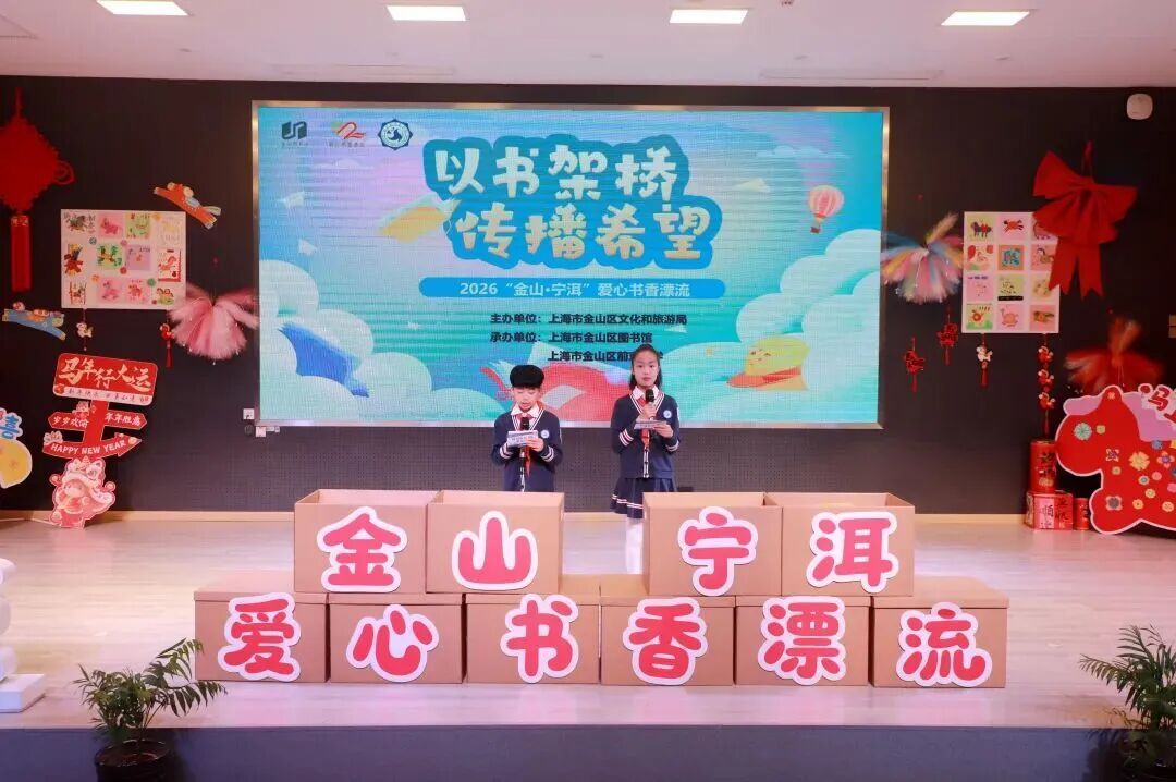 2026年4月,由金山区文化和旅游局主办、金山区图书馆承办、前京小学协办的2026“金山·宁洱”爱心书香漂流进校园活动在前京小学顺利举行。活动以“以书架桥 传播希望”为主题,号召队员捐赠闲置优质少儿读物,以书香传递温暖,以阅读缔结千里友谊。