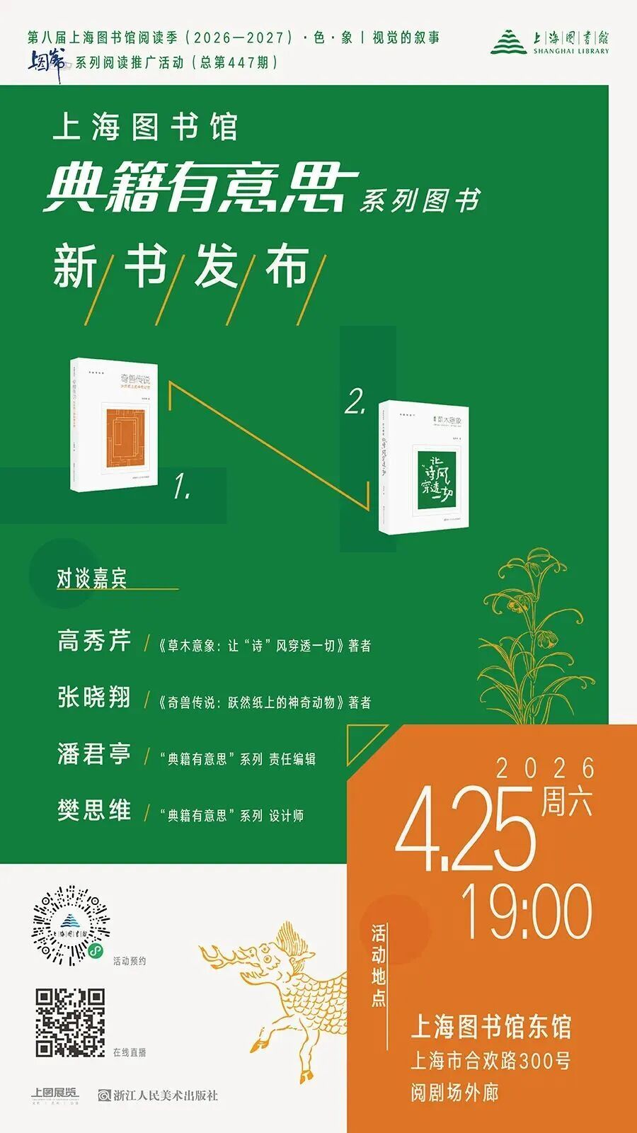 第八届上海图书馆阅读季以“章采炳耀 斯文在兹”为主题,围绕“火·淬 | 思想的火种”“纸·褶 | 文明的容器”“笔·迹 | 书写的轨迹”“色·象 | 视觉的叙事”“印·传 | 复制的浪潮”“典·藏 | 精神的守望”“余·音 | 纸外的回响”六大板块,开展一系列精彩纷呈的阅读推广活动,以向内溯源为经,梳理文献线索,帮助读者在阅读中体认中华文明根脉,解读“何以中国”的精神密码;以向外展望为纬,铺陈交流图景,引领读者在体验中感知多元文明魅力,探寻“美美与共”的理想境界。
