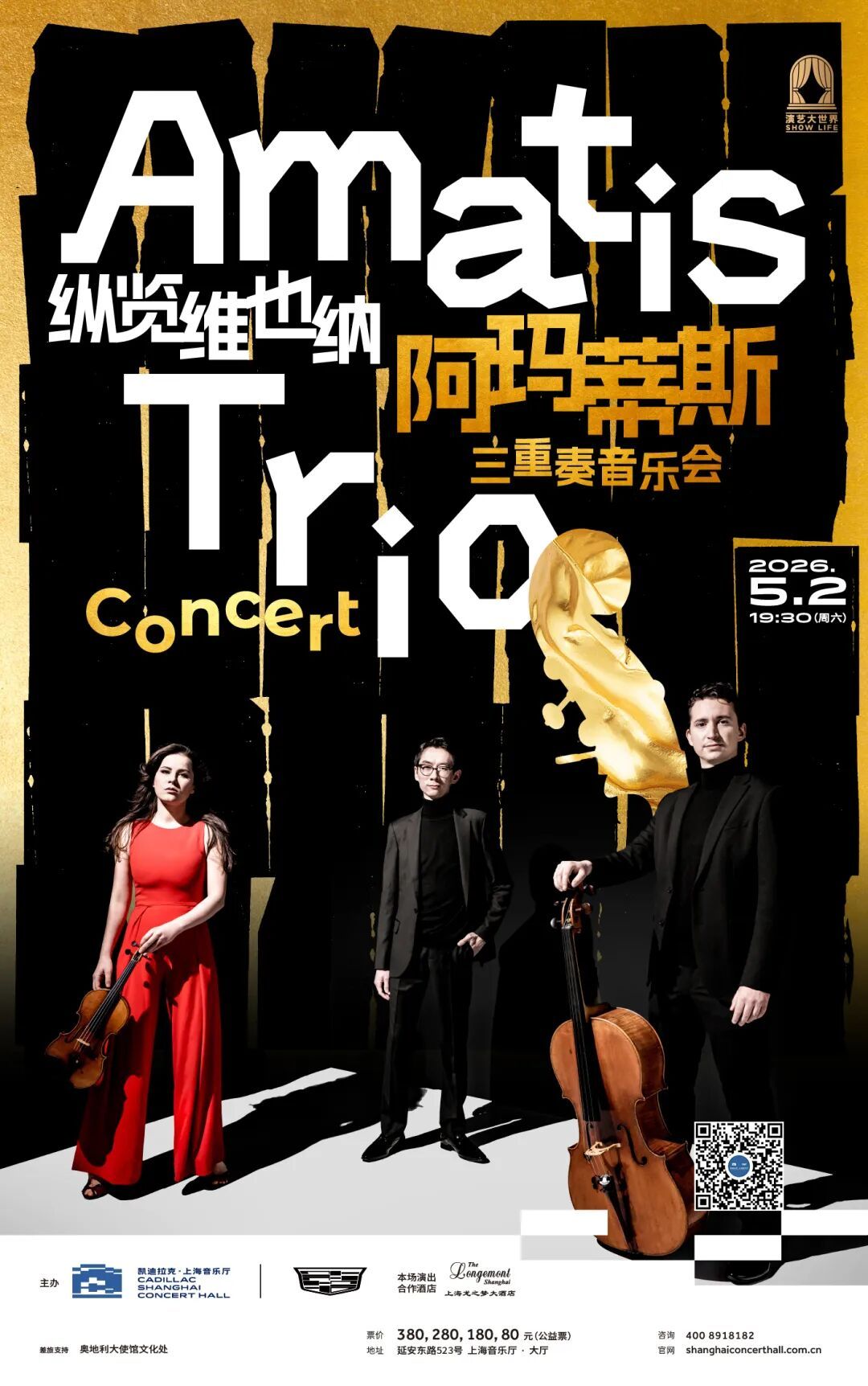 五一小长假期间,荣获BBC新生代艺术家与ECHO新星大奖的阿玛蒂斯三重奏将登台凯迪拉克·上海音乐厅。乐团由小提琴家莉娅·豪斯曼、大提琴家塞缪·谢泼德与钢琴家韩梦捷组成。三人以鲜明音色与高度凝聚的合奏迅速崛起,被英国《The Strad》誉为“令人屏息、能量全开,风暴与激情并至的室内乐演奏”,《留声机》杂志亦评价其“将年轻的活力与成熟的艺术性融为一体,技巧与音乐性均达世界顶尖水准”。