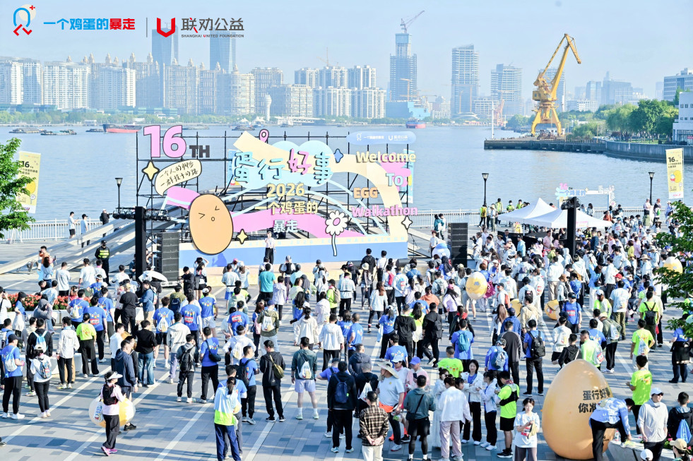 4月26日,第16届“一个鸡蛋的暴走”公益徒步筹款活动在浦东举行。本届暴走以“蛋行好事”为主题,593支队伍、3099名暴走队员在前滩友城公园集结出发,挑战12小时内完成50公里或15公里徒步,用脚步为弱势儿童的健康成长汇聚爱心。