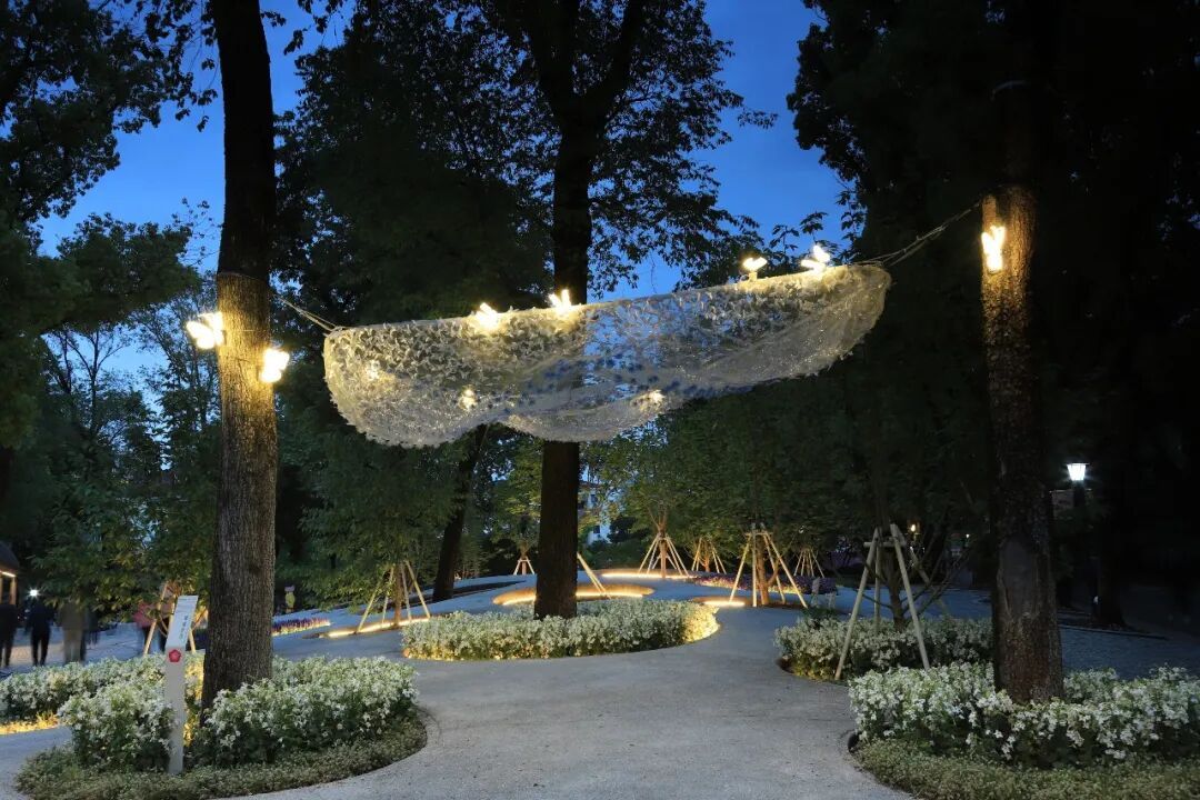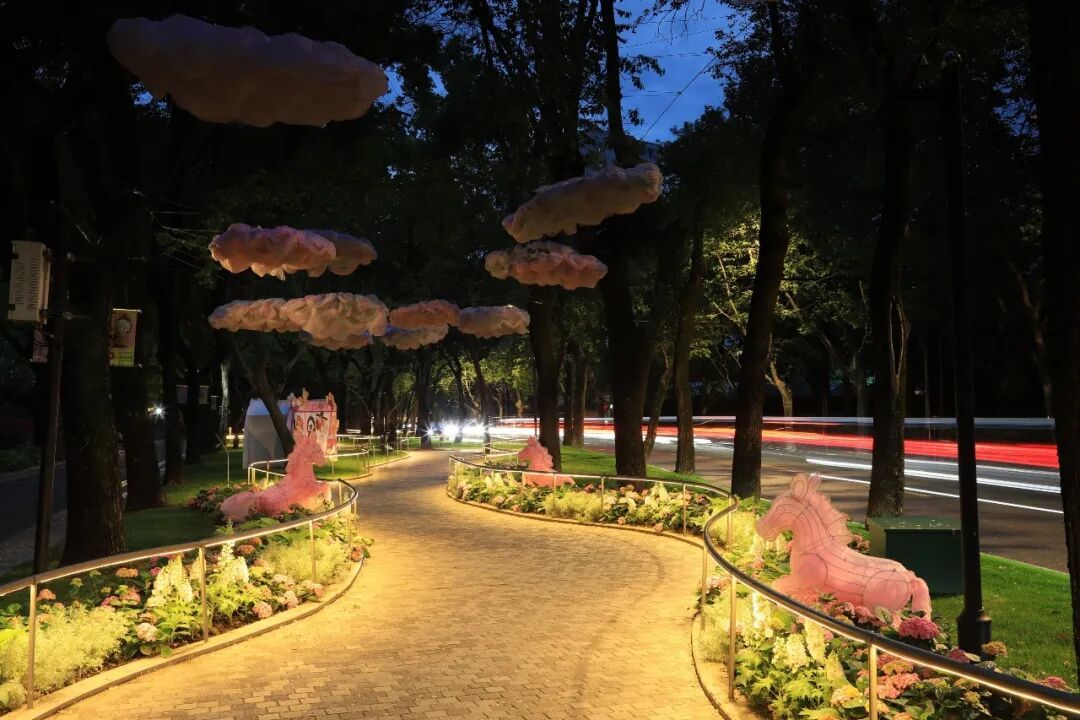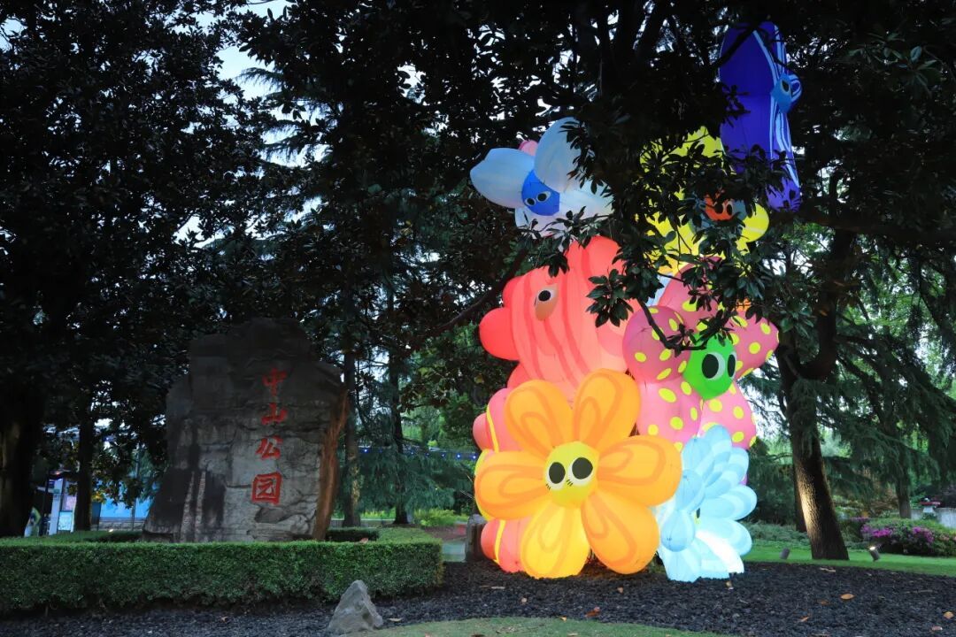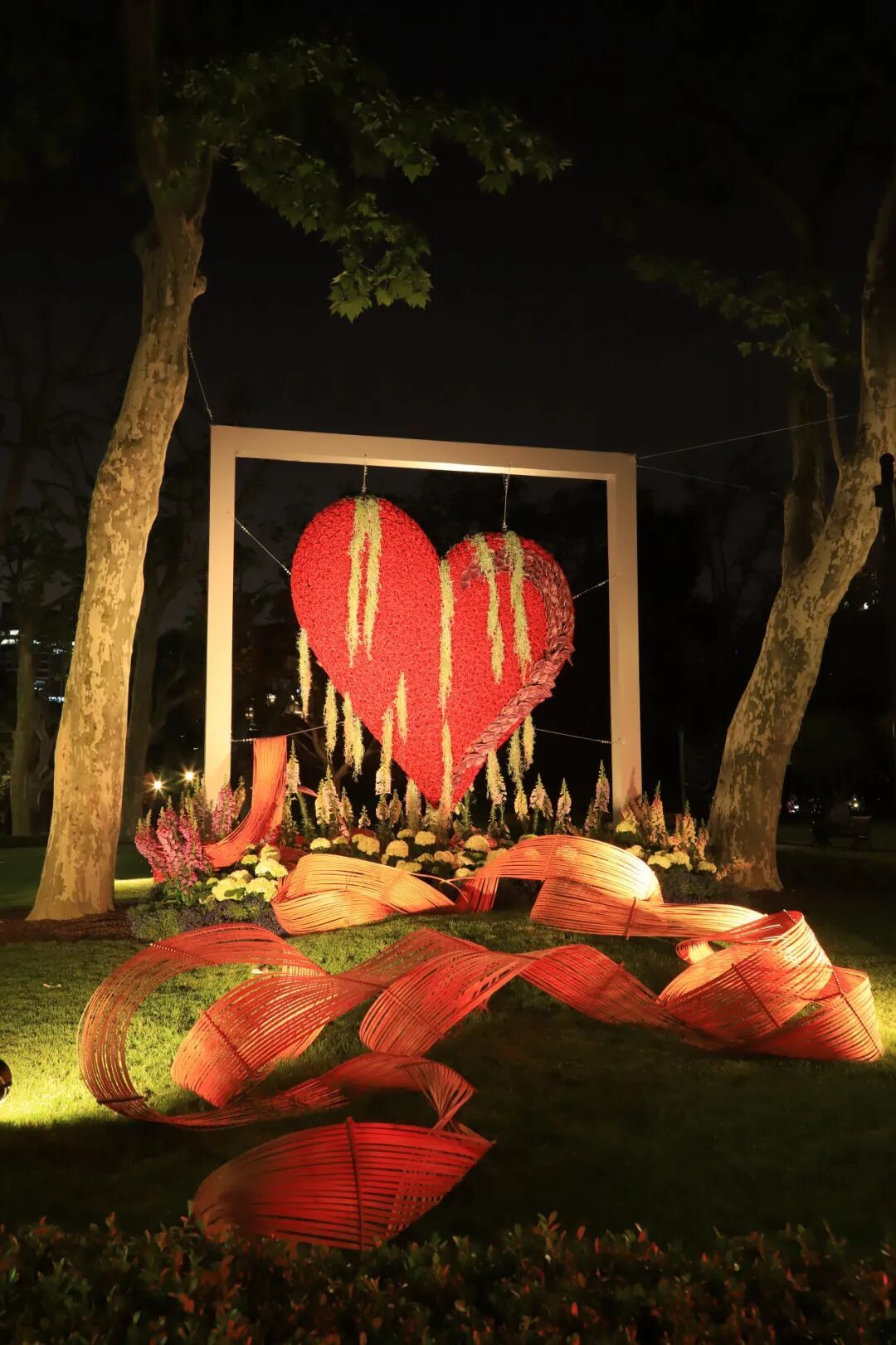 公园门口的“花囡囡”亮起了灯,以诚挚的笑脸欢迎大家夜游花卉节。“Momo精灵部落”的几个打卡点位没有了白天的喧闹,市民可以尽情观赏。