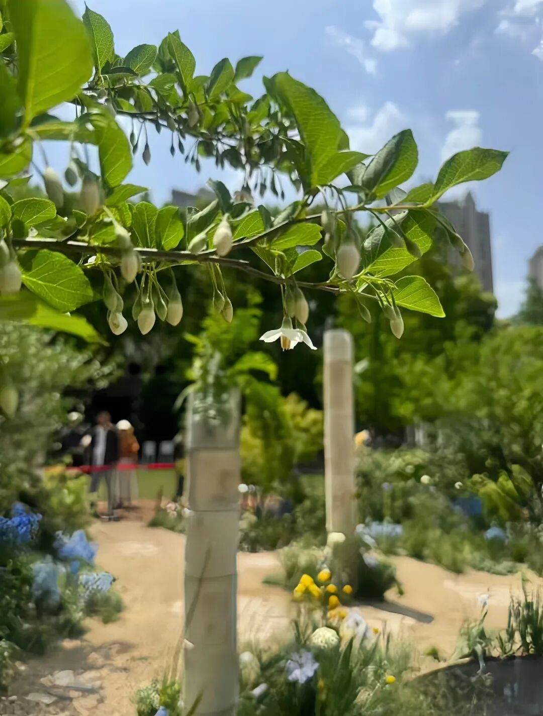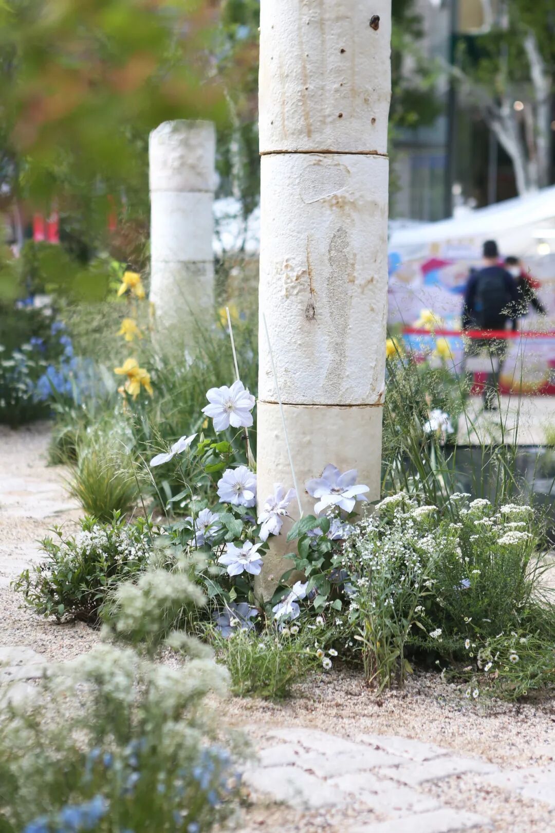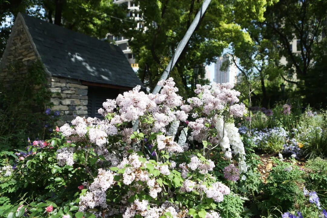 本周,野茉莉、丁香花、荷包牡丹、铁线莲次第盛放,交融成诗意花海,让新天地更显自然独韵。