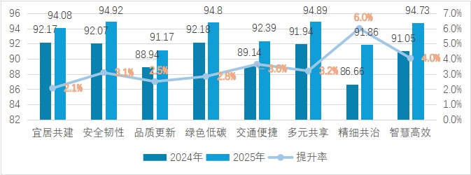 调研显示,市民满意度较高的领域主要集中在三个维度:一是安全韧性维度。市民对市政管网安全、消防安全、地下空间安全,以及排水防涝应急抢险和应急避难场所建设等评价较高。二是多元共享维度。市民对历史建筑保护活化,以及图书馆、城市书屋、博物馆、科技馆、美术馆、展览馆、剧院等文化设施满意度较高。三是绿色低碳维度。市民对城市公园绿化、城市慢行绿道、市政道路绿化、生活垃圾分类和公共建筑绿色节能等方面认可度较高。