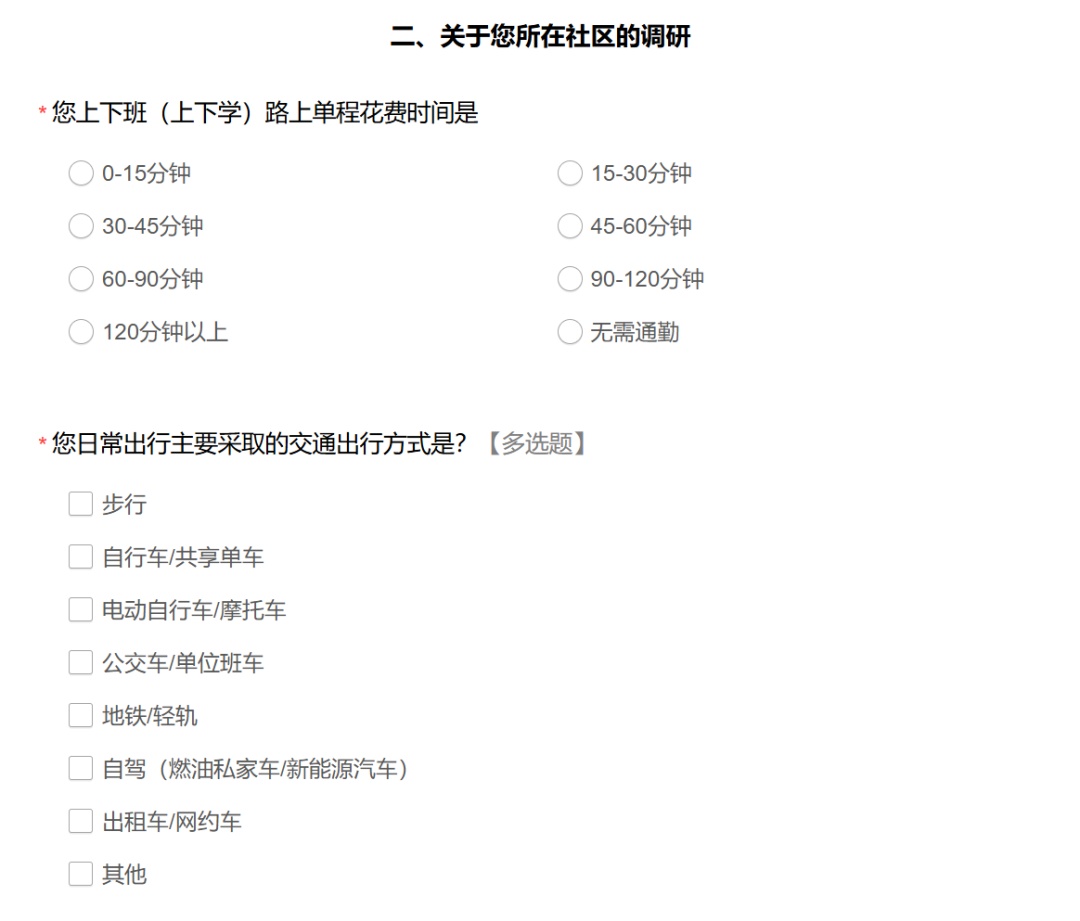 部分问卷内容