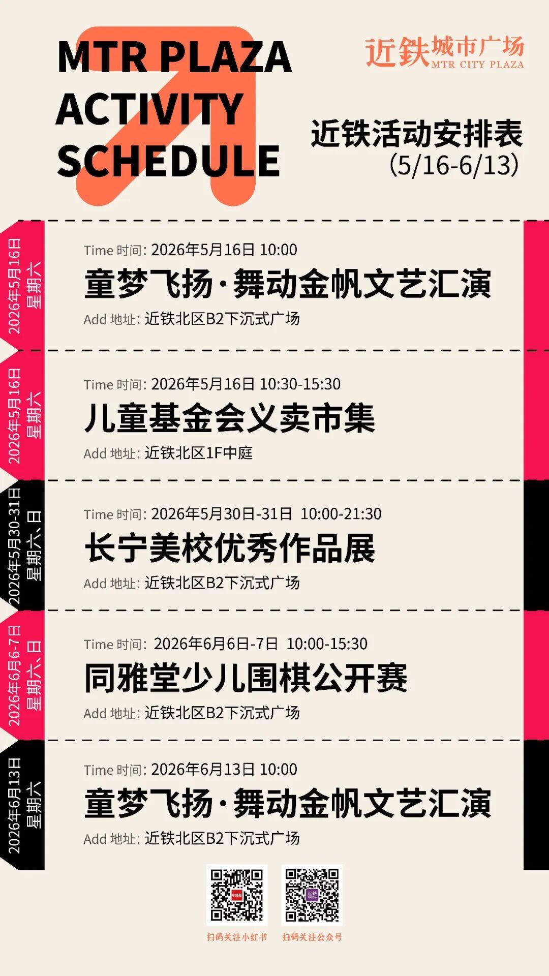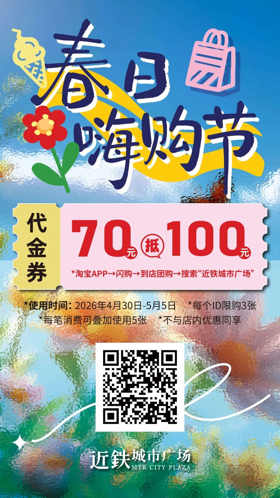 “五五购物节”期间,上海近铁城市广场推出涵盖文化演出、艺术展览、体育赛事、互动体验、团购优惠及新店开业等多元系列活动,打造集购物、娱乐、文化体验于一体的综合性消费场景,为市民带来丰富精彩的节日消费体验。 4月30日至5月5日,消费者可通过淘宝闪购搜索“近铁城市广场”,抢购春日嗨购节“70团100元”商户代金券,覆盖餐饮、零售等多品类,共有南京大牌档、高老九、多乐之日等在内的29家商户参与团购。 “五一”假期后,文艺演出与公益市集将率先亮相。5月16日,“童梦飞扬·舞动金帆2026年度文艺汇演”亮相广场,活动包含少儿芭蕾舞展示、古典芭蕾变奏、现场教学体验等环节,展现少儿芭蕾教学成果。同期举办儿童基金会公益义卖市集,不仅为公益项目筹集善款,还可供市民选购手作作品、品尝特色美食、参与亲子互动。 各类主题活动将陆续推出:5月30日至31日,长宁美校“成长的色谱——2026年春季优秀学生作品展”将在此开展;6月6日至7日,由上海市体育局、上海市体育总会牵头的上海城市业余联赛少儿围棋公开赛落地近铁城市广场,响应全民健身号召,丰富市民体育文化生活。 此外,近铁城市广场近期迎来一批新店开业,包括捡角台湾食堂、梧桐姥姥、莉莲蛋挞、LOHO眼镜、璞原素SPA、奶糖艺术中心等品牌,进一步丰富市民的餐饮、休闲、健康与文化消费场景,为区域消费市场注入新活力。