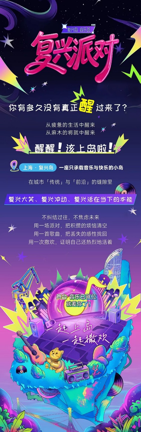 当花香尚未散去,音符已然跃动。5月1日至2日,首届“复兴派对”音乐荟将在这片新生的土地上火热开唱,标志着上海最大滨水公共空间——复兴岛岛北公园的惊艳首秀。这个约15.4公顷的超大尺度滨水空间,有着近70%的绿化率,它不仅是钢筋水泥森林中的一片绿洲,更是一座藏在江心岛的城市自然客厅。核心处约8万平方米的中央活动草坪已然就绪,静待市民前来散步、露营、野餐,不久后将迎来复兴岛音乐荟的“引爆时刻”。 超强卡司齐聚复兴岛,用旋律唤醒热爱。音乐荟的舞台群星璀璨、风格多元。5月1日,从Swang多雷的说唱锋芒到腾格尔的草原辽阔,还有陆虎、火星电台、黄雅莉等艺人将接力嗨唱,掀起从午后到夜幕的不间断狂欢。5月2日,郑钧的摇滚呐喊、王铮亮的深情演绎、隔壁老樊的民谣故事,以及李慧珍、早安等实力唱将,从午后到夜幕,每一秒都值得狂欢。 这不仅仅是一场音乐会。活动现场,“凡人修仙传”沉浸式修仙体验区将带领游客踏入韩立的仙侠世界;UP主造物集汇聚了TESTV官方频道、我是超人cr等众多人气创作者,带来美食、非遗手作与潮流周边的一站式体验。音乐、国创、市集三重狂欢不打烊,复兴岛诚邀每一位市民登岛,在江风、草坪与旋律中,一起感受这份自然与人文交织的热情与诚意。