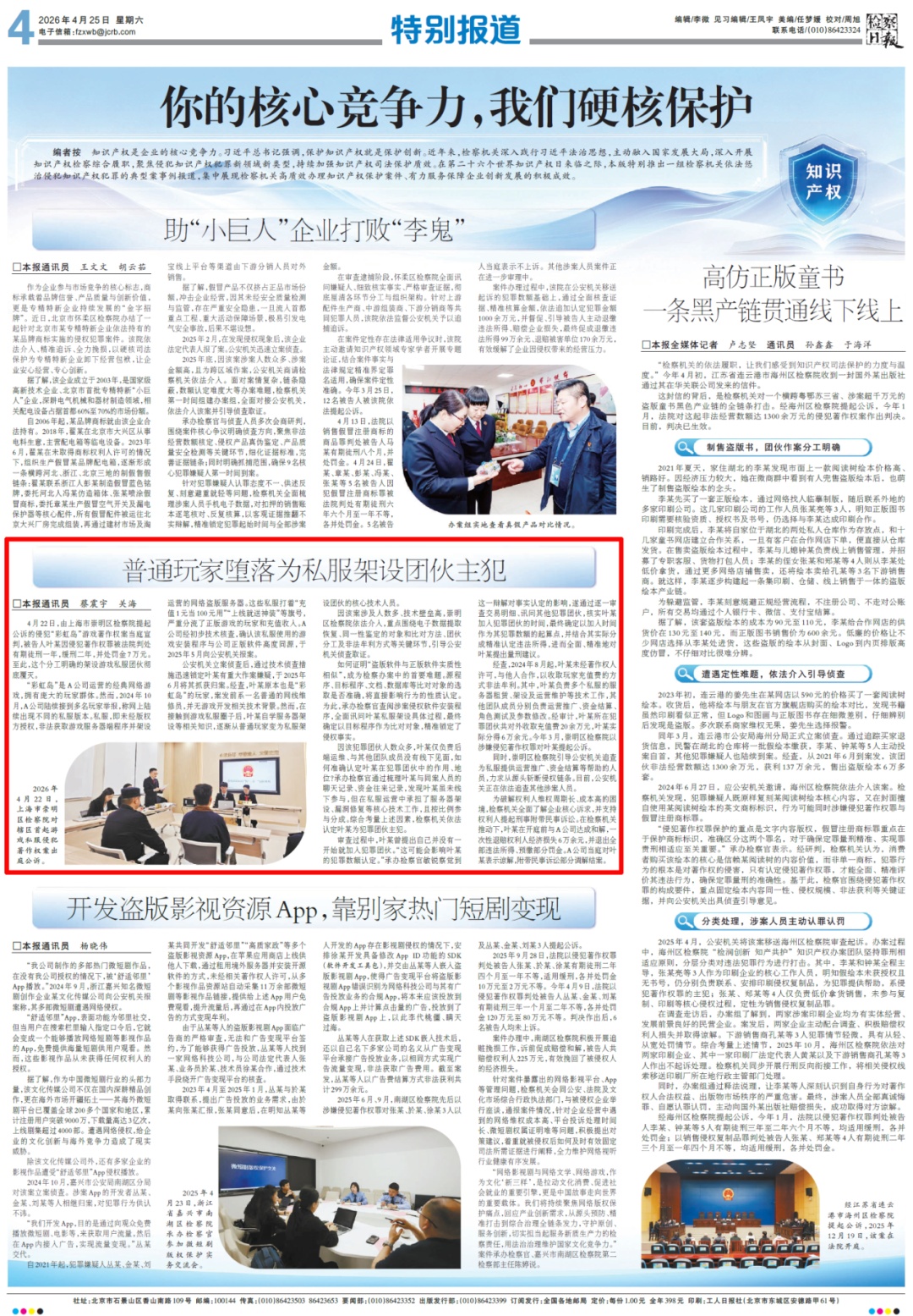 2026年4月22日,上海市崇明区检察院对辖区首起游戏私服侵犯著作权案出庭公诉。