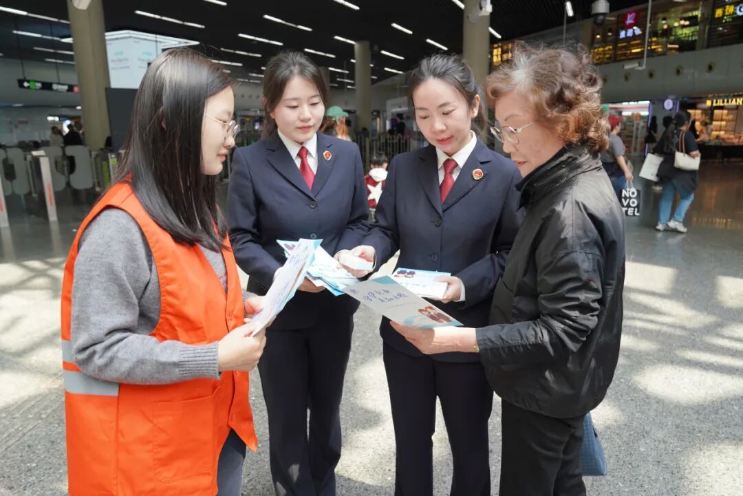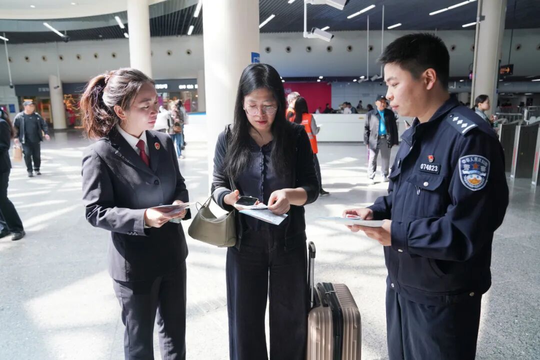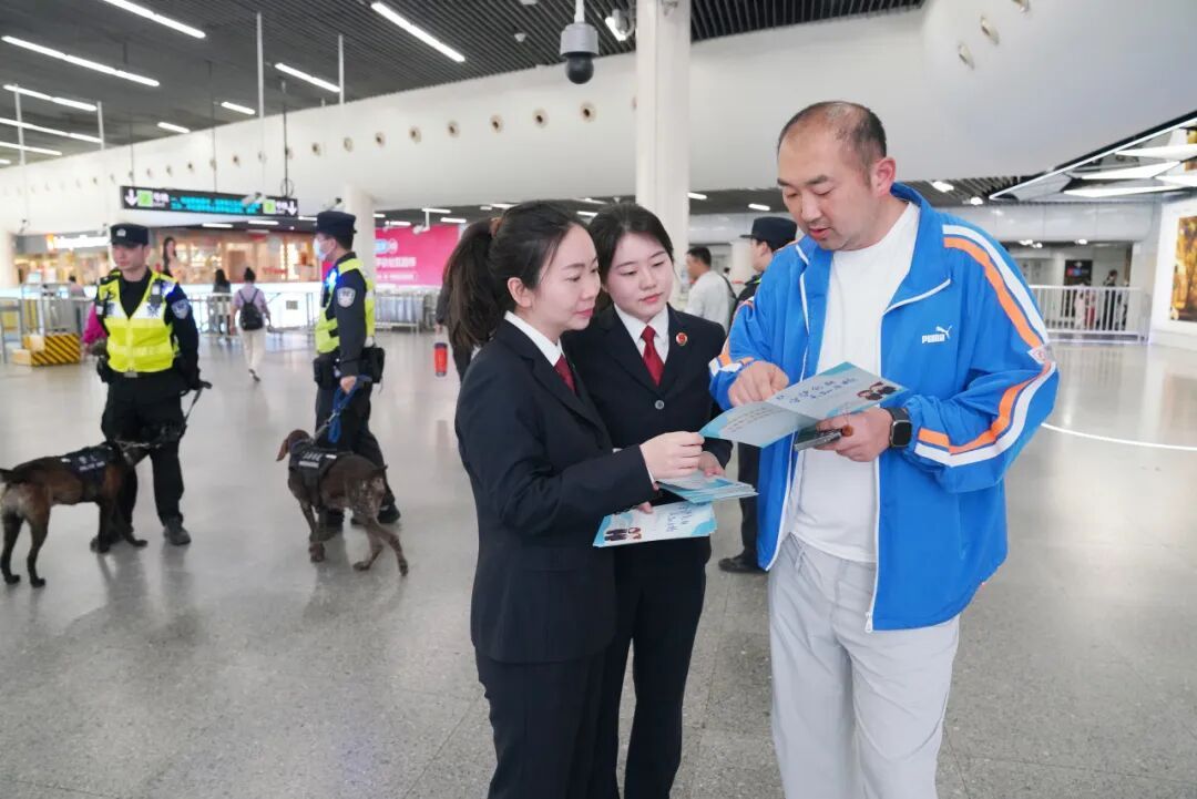 三方单位还联合设置普法宣传展台,通过设立宣传展板、发放宣传手册、现场法律咨询、典型案例讲解等多种形式,面向往来乘客开展普法宣传。