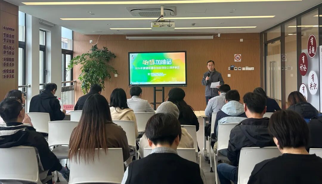 为激活基层治理活力,破解社区治理难题,近日,2026年“治慧加油站”徐汇区康健街道自治金项目立项评审会在街道党群服务中心举办。街道相关负责人、各居委会主任及自治金项目负责人等40余人齐聚现场,共同为社区自治项目把脉定向、凝聚合力。