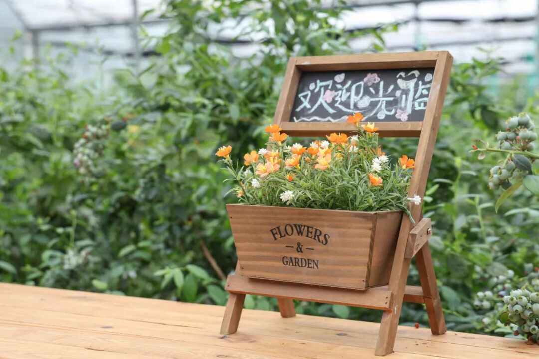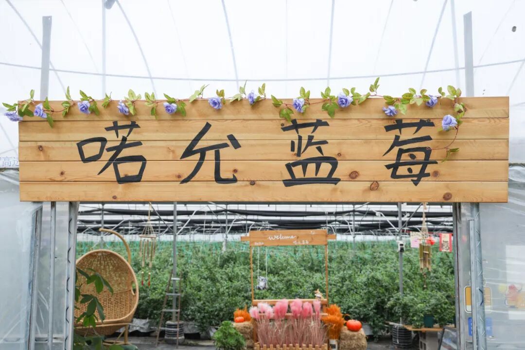 走进喏允蓝莓园,温馨、活泼的氛围布置映入眼帘。可爱的挂饰、缤纷的躺椅……为蓝莓园增添了一抹色彩。负责人陆先生介绍道:“我们今年特地增设了休息区、儿童游乐区,有拼豆、捞小鱼等供孩子们玩耍。”