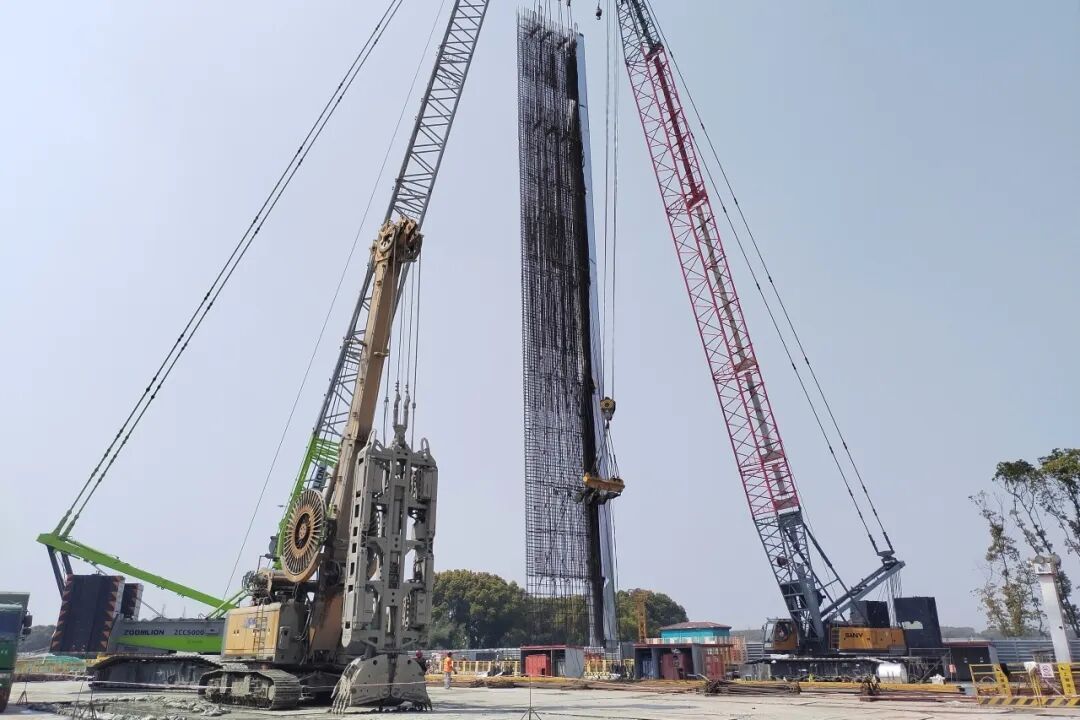 面对复杂严苛的施工条件,项目团队统筹部署、精准施策,严格遵守设计规范与专项方案进行施工,聚焦泥浆调控、成槽垂直度、钢筋笼焊接、混凝土浇筑等关键工序,精细管理、标准作业。针对大型钢筋笼吊装等高危作业,统筹施工、安全、技术、质量等多部门联动开展前置验收、旁站监督,严格执行24小时轮班值守,确保施工安全高效推进。