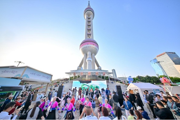 以民族之韵,赴世界之约。师宗壮乡民族歌舞轮番登场、惊艳绽放,悠扬的歌声穿越沪上清风,婉转绵长、余音绕梁,灵动的舞姿翩跹如蝶、眉目含情,将壮乡儿女的热情淳朴、豪迈洒脱诠释得淋漓尽致,让现场游客沉浸式感受师宗民族文化的深厚底蕴与独特魅力。每一场推介,皆以热烈奔放的民族打跳圆满落幕,欢快的节奏、灵动的舞步极具感染力,引得众多中外游客纷纷驻足、主动参与,欢声笑语间,将现场气氛一次次推向沸腾的高潮,也让师宗的民族热情深深镌刻在每一位参与者心中。