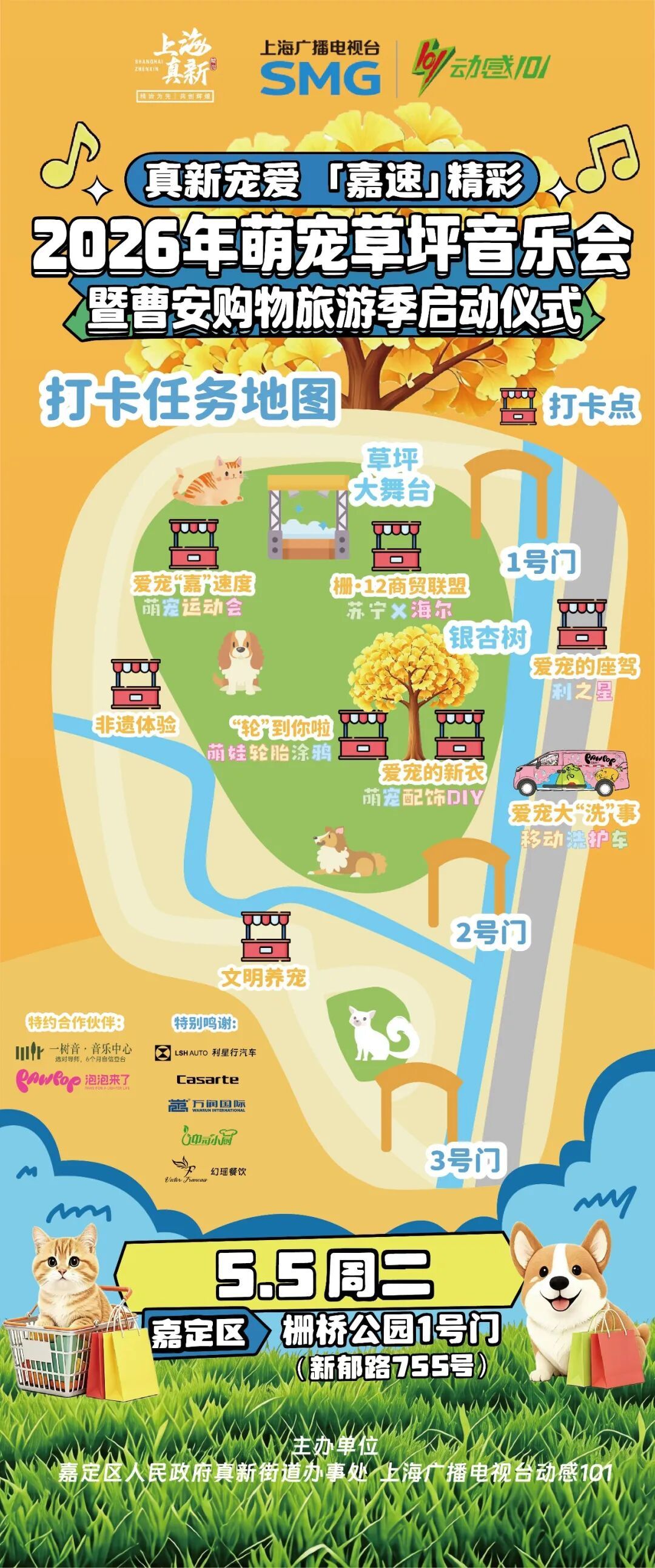 家长们可以在【萌宠市集】尽情玩耍,欢乐游园,听专业驯犬师为你支招!游园会还集结了真新多元文化与美食体验,设置【文化体验区】体验非遗、春天里的集市、创意涂鸦、草坪集市、卡丁车、乒乓球嘉年华;【美食体验区】体验特色小吃、网红饮品、现磨咖啡等;【打卡集章互动】完成不同打卡任务,领取丰富伴手礼以及周边商户优惠!家长们,快快带上你家毛孩子,奔赴一场“嘉”门口的春日微度假~当天现场设有宠物摄影,建议提前为宠物准备可爱服饰,留下美好回忆!
