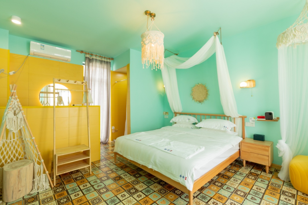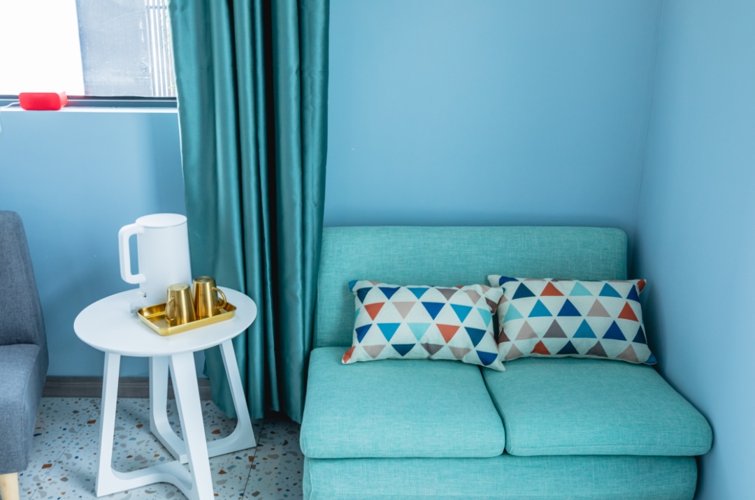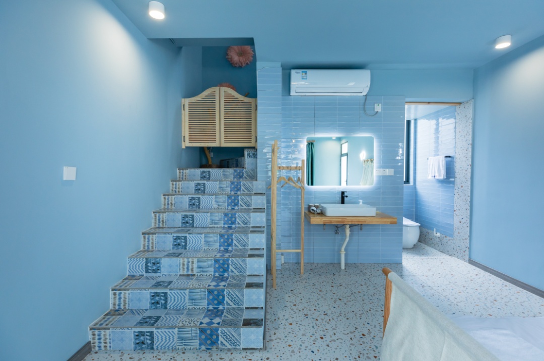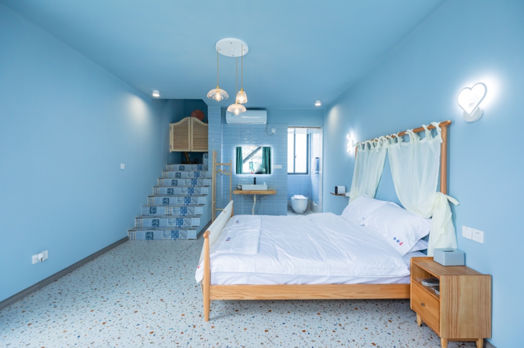 六个房间,有六种不同的装饰颜色,天空蓝、工业灰、蓝灰、浅灰、亮白、淡绿,每走进一间房,都是不同的视觉体验。
