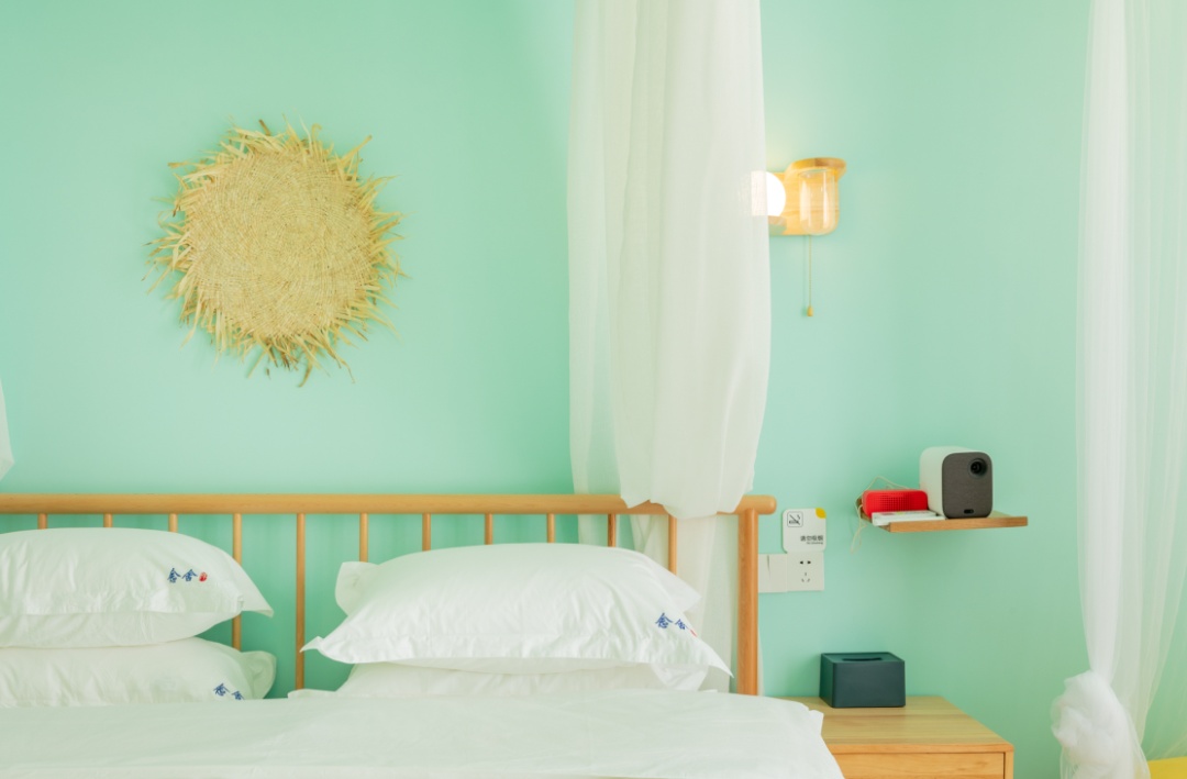 “念舍禅”的所有客房,都没有传统的电视机,而是提供了小型投影仪。主人说:“民宿周边除了东平国家森林公园、虹桥花乡等几个景点外,还有小公园、小花园,周边崇明乡村的美景也值得看看。我会鼓励来这儿的客人多出去走走,体验真正的乡村田园。”