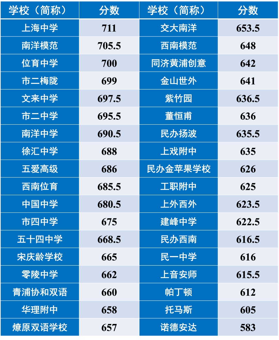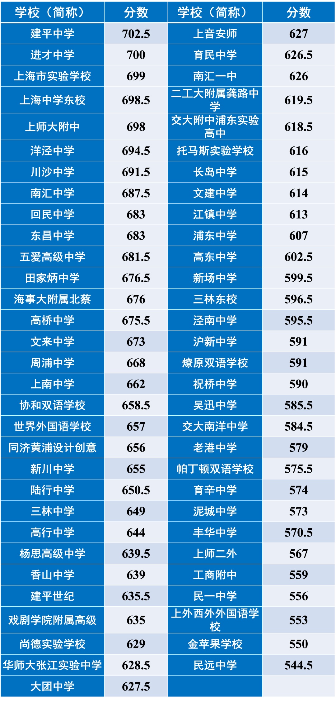 速看!2021上海36所民办高中最低投档控制分数线公布