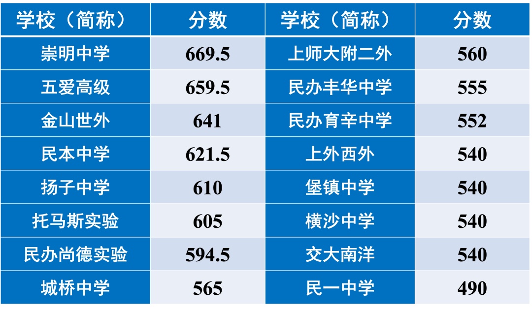 1、市教委规定的公办普通高中控制线为540分,民办控制线已由各区招生学校公布,详情可点击下方链接。