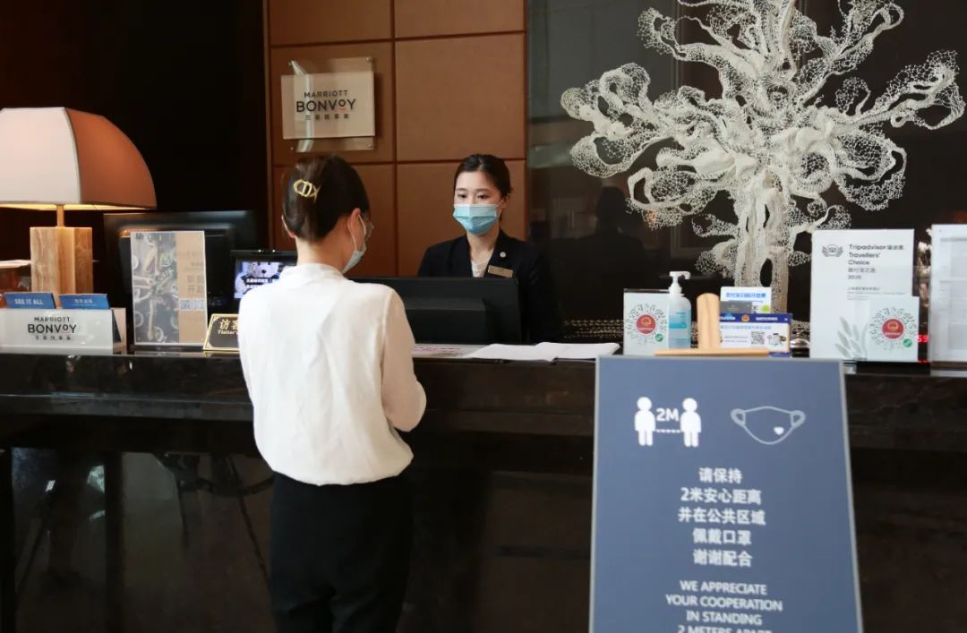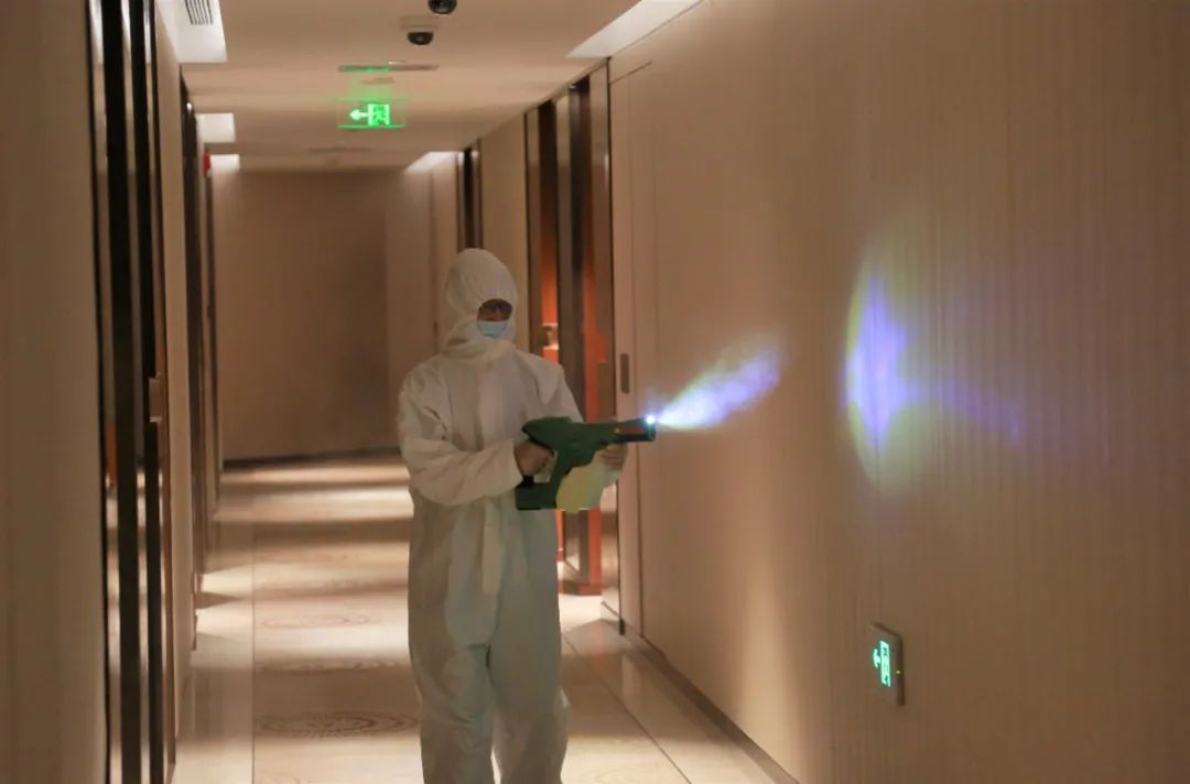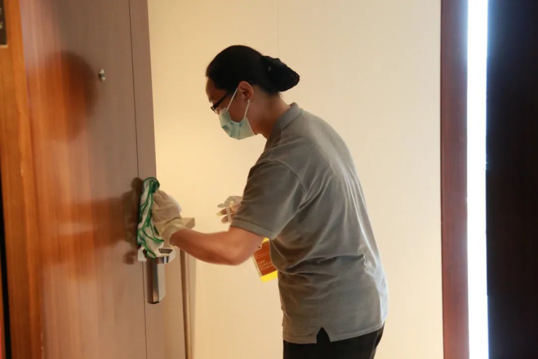 酒店负责人孙伟杰介绍,酒店车库、大堂以及餐厅的入口处都设置了测温查码点,在客人退房后和入住前,工作人员还会用清洁剂擦拭消毒房间门把手和房内电话机等物品,并进行全屋通风清洁。