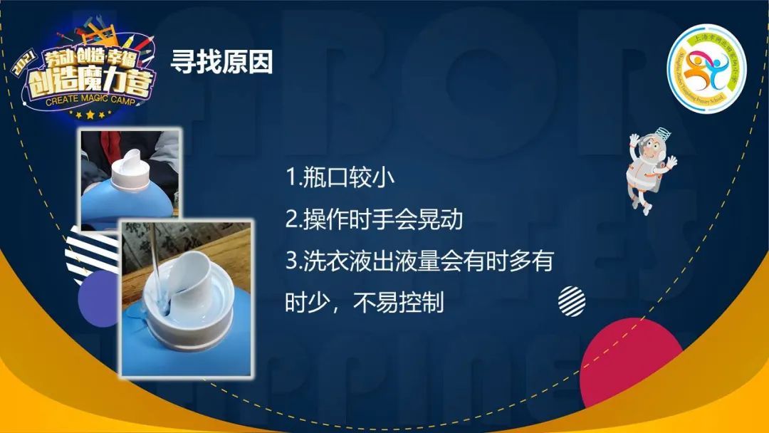 于是他们开始寻找原因,通过尝试,他们发现瓶口较小,操作时手会晃动,洗衣液出液量会有时多有时少、不易控制等问题,会影响洗衣液能否顺利倒入瓶中。