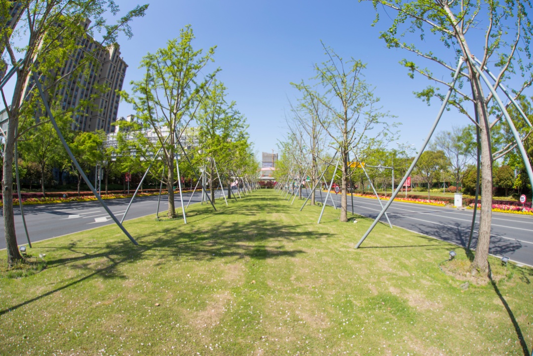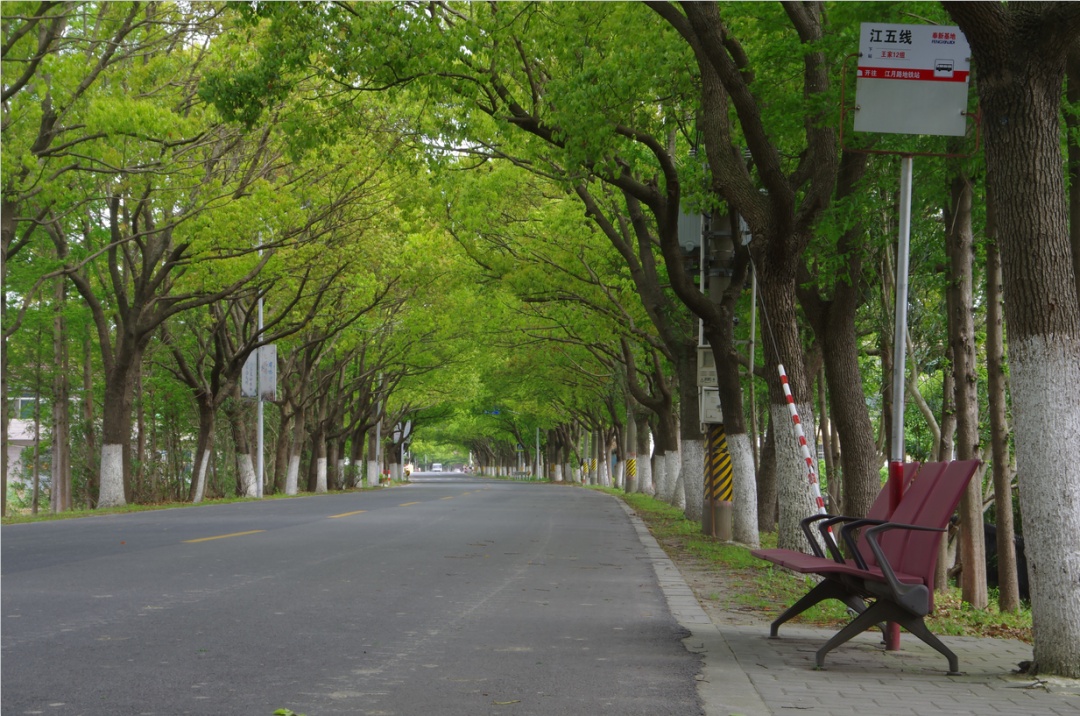 位于九棵树(上海)未来艺术中心西北侧的弧形道路树桓路,阳光透过绿色的树叶留下浅色的、殊形妙状的斑纹,给人无限遐想,营造具道路美、环境美、自然美的文化综合体,是奉贤人民欣赏高雅艺术的好去处。