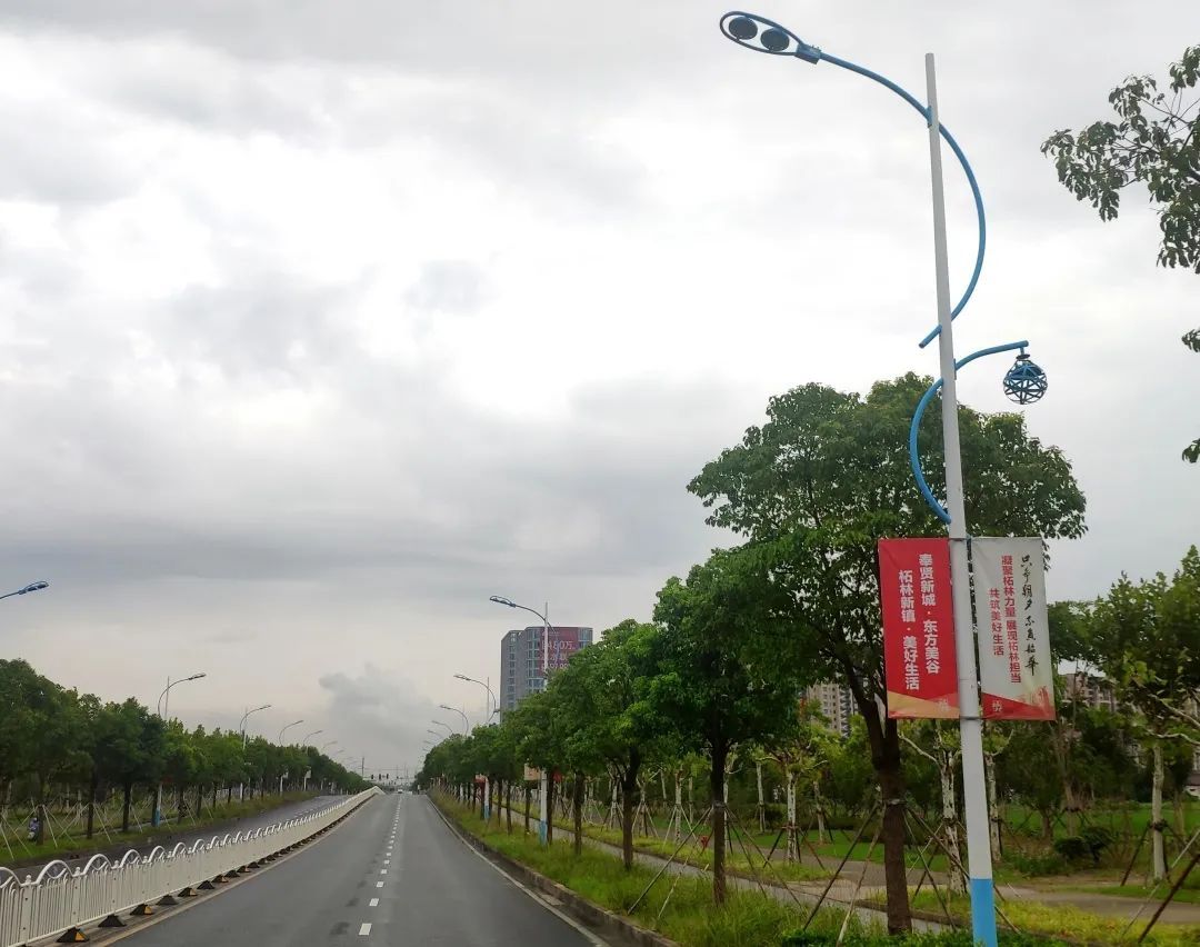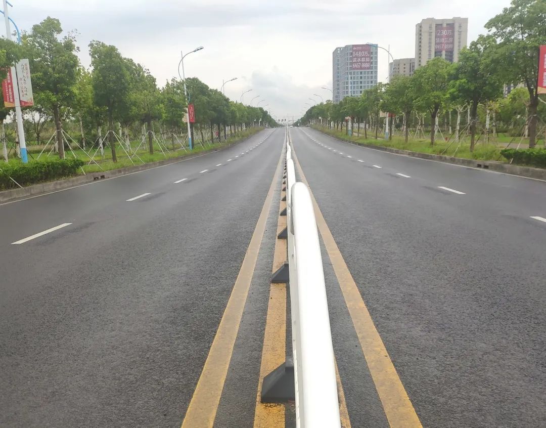 江海南路,北起平庄西路,南至新林路,全长2.8公里。隔离栏上融入柘林非遗文化——滚灯元素,走在江海南路上,是否给你一种“远离城市的喧嚣,回归自然的宁静”的感觉。