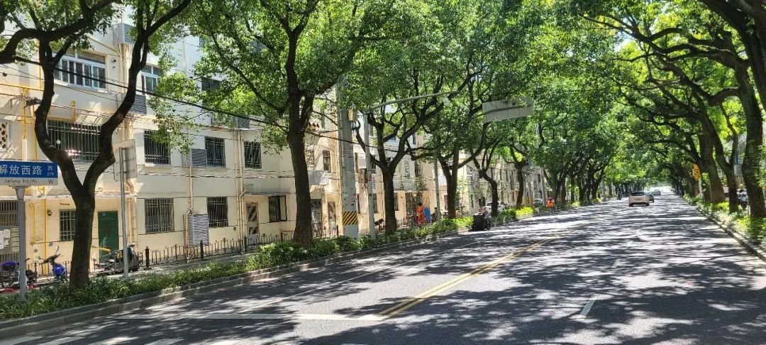 解放西路从贝港桥以西,犹如一条绿色隧道,有着老城厢独特的“味道”,周边设施齐全,菜场,超市,公园,生活在此别有一番风味。两边的香樟树,枝叶茂密,夹叶成荫,车辆缓缓经过,更添诗意盎然。