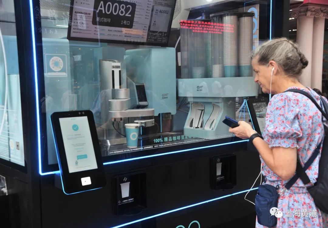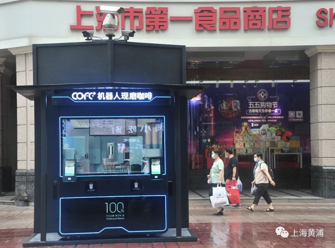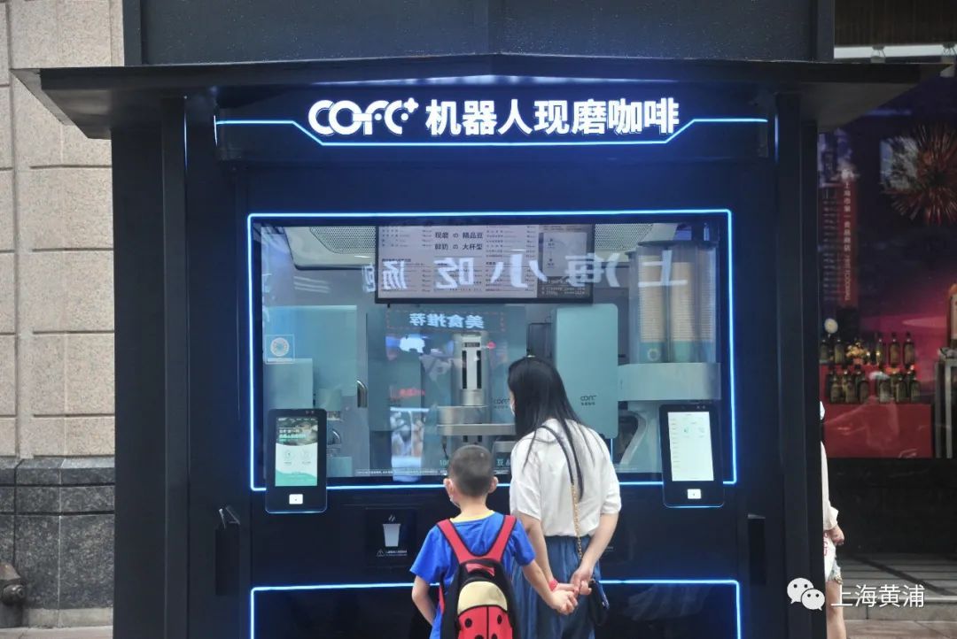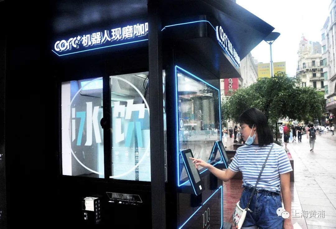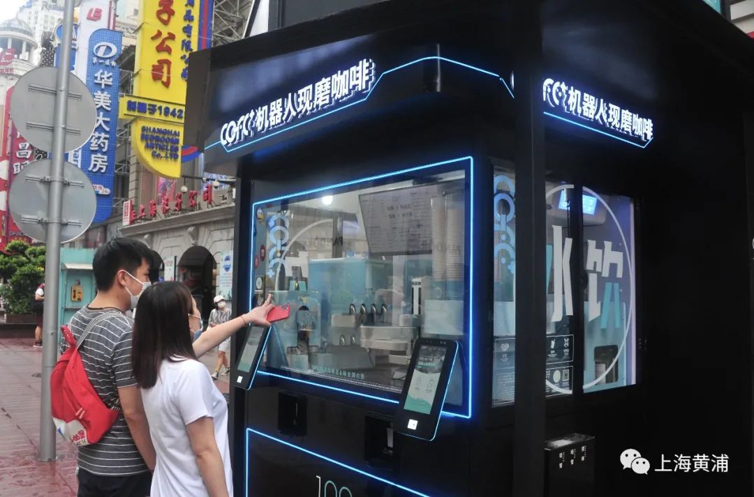 机器人咖啡亭近日出现在南京路步行街食品一店门口,吸引不少途经游客的好奇“尝鲜”。