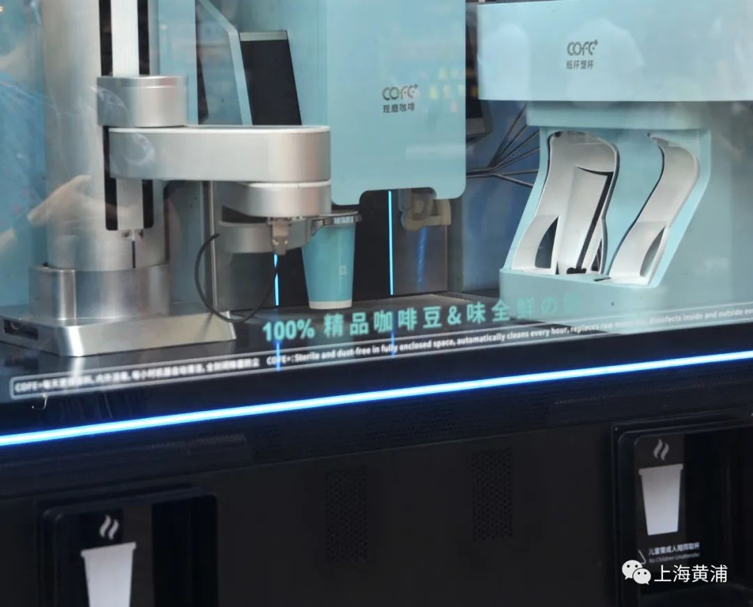 顾客在屏幕上选择咖啡品种,扫码支付后,咖啡厅内的机械臂即开始操作,从取杯、制作到封盖完成,1分钟内即完成了整个过程。据悉,这座机器人咖啡厅全名为:“COFE+机器人现磨咖啡亭”。