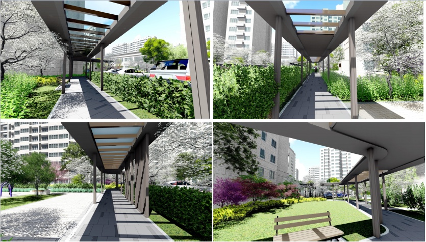 小区中心区位形成总长600米的慢跑环路效果图