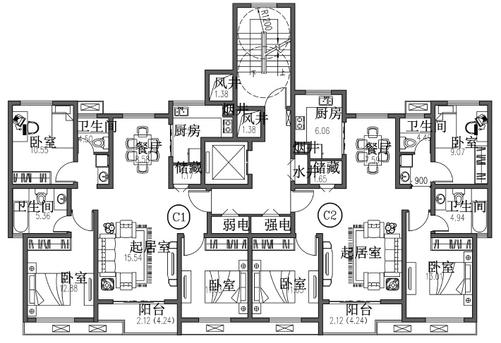 三室二厅二卫C房型效果图