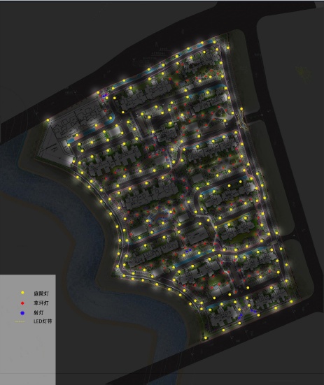 夜景灯光主要以庭院灯、草坪灯为主