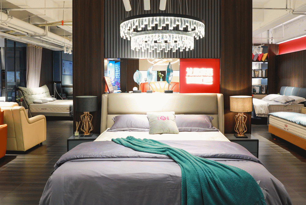 走进公司一层的销售中心,从皮床到布床,从软床垫到硬床垫,从儿童款到老人款,床头柜、三件套、沙发……丰富的产品,为消费者提供了全方位的选择。展厅内还特别保留了一张1972年上海的徐女士购买的龙凤牌床垫。这张满是岁月痕迹的床垫不仅见证了那个年代一个普通家庭的温馨生活,也见证了老品牌对产品质量的坚守。