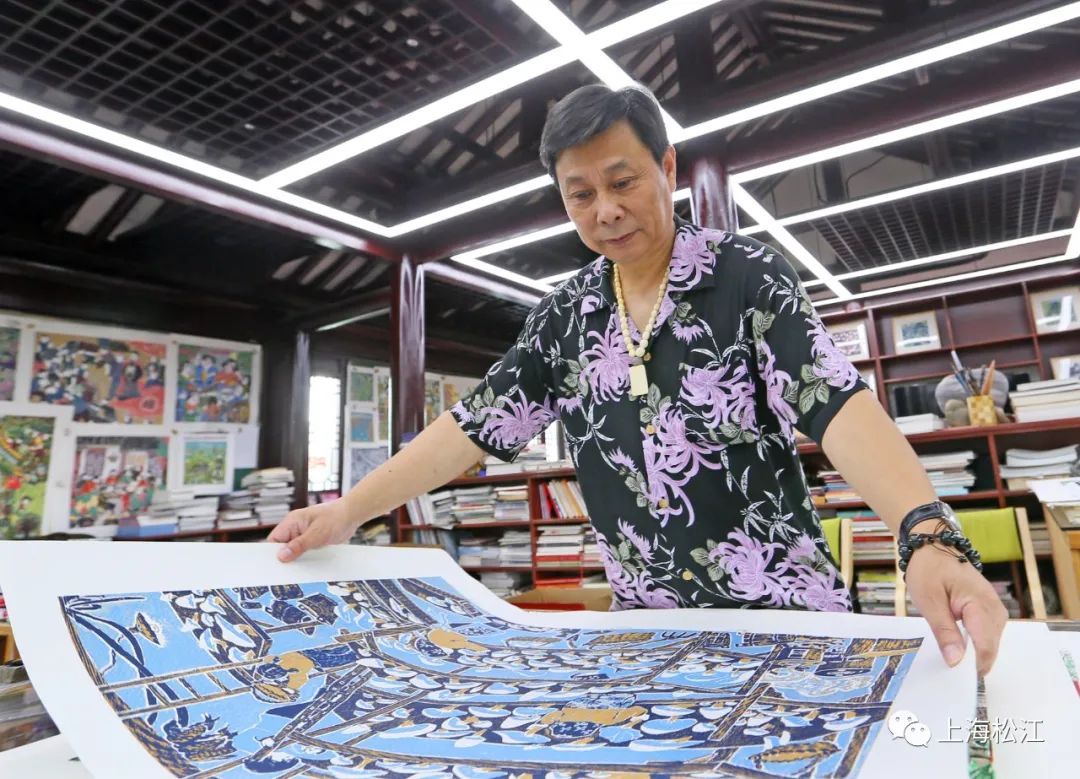 “我从1987年开始接触丝网版画,算是松江最早接触农民丝网版画的一批人。”吴颖伟是车墩镇版画美术馆的一名资深创作者,从小对绘画有着浓厚的兴趣,他虽然很早就开启了丝网版画的探索之路,但并没有将其作为职业。2017年,他又重回艺术之路。