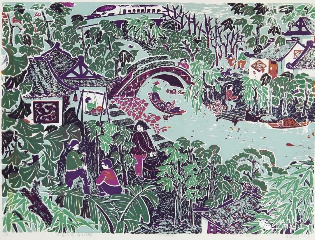 以江南农村生活为创作背景的松江丝网版画