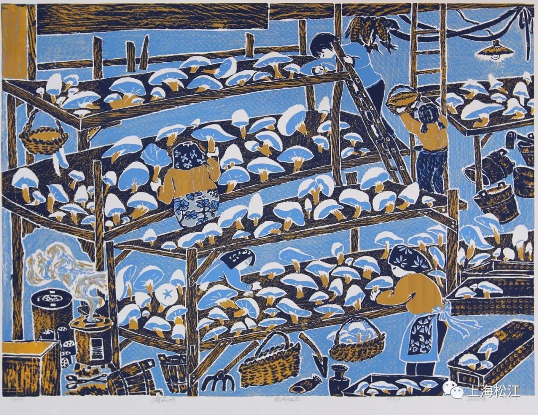 松江丝网版画以江南农村生活为创作背景,运用现代丝网感光技术,吸收了灶画、剪纸、刺绣等民间艺术形式,虽然谈不上历史悠久,但却以独特的手法记录了大量的乡村生活场景。