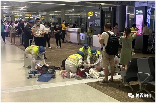 日前,浦东机场发生惊险一幕:一名刚下飞机的旅客在2号卫星厅登机口附近突然晕倒,心跳呼吸骤停!机场工作人员立即向卫星厅医疗急救站求救,急救站3名杨行的医护人员贾伟峰、刘静、桂丹立即携带急救箱奔赴现场进行救治。