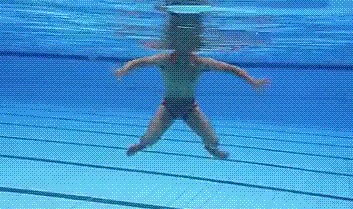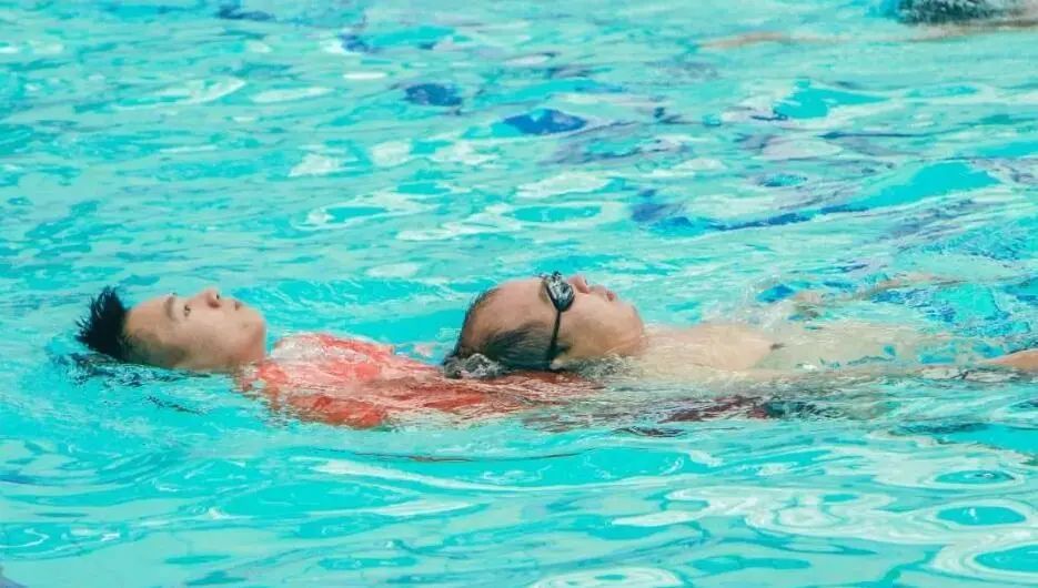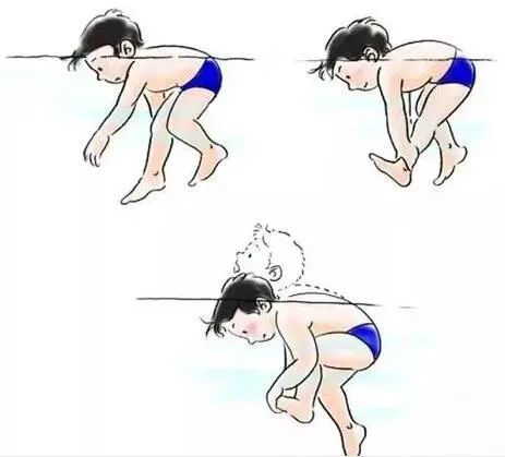 3.身体下沉时,可将手掌向下压,用脚踢水,等待救援。