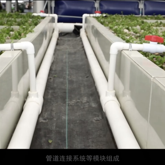 在练塘镇,上海绿椰农业种植专业合作社打破了传统模式,引入了“鱼菜共生”概念。在科技手段的加持下,鱼菜共生技术巧妙地把养鱼业与果菜种植业进行有机生态结合,让种菜与养鱼之间形成一种互生共促的生态关系,形成生态绿色环保理念的生产模式。
