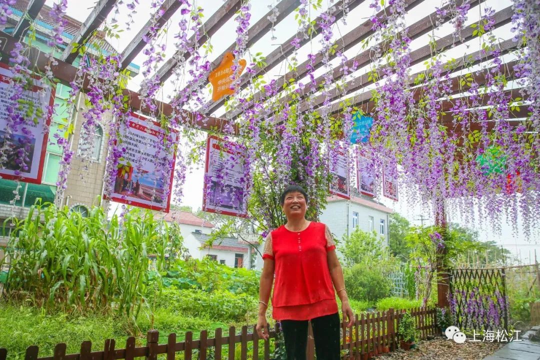 与朱希文家靠北相邻,邻居朱栋良家的小院则是一条“紫藤”长廊,沿着石子路走进,紫色花朵从花架上悬挂而下。“我的花一年四季都开不败。”朱栋良向小松卖了个关子,“其实用的是仿真花,这样便于打理,也把景色停留在最美的时候。”