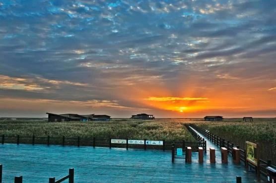 无独有偶,毗邻鸟类保护区的东滩湿地公园,也经历了历时10年的湿地生态修复和重建工程。建成后的东滩湿地公园内栽育了无数丛景观花卉、设立了电动游船码头、游客中心,又建了漪水苑、雀鸣渡等景点。如今的东滩湿地公园,已经找不到半点从前“一片盐碱地”的影子,脱胎换骨成了市民、游客爱去的原生态花园。2017年,东滩湿地公园成功创建国家生态旅游示范区。