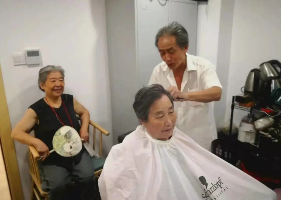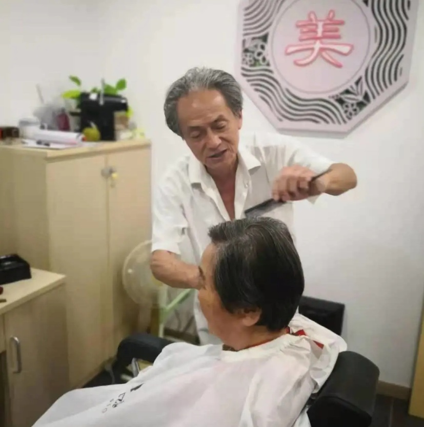 年近古稀的陆师傅,退休前的本职工作与理发完全无关,他的理发手艺还是学生时期参加校园为人民服务活动而偷师自学的。但从那时起,只要周边的同学、街坊邻里找他剪发,他都免费服务,而退休之后陆师傅就是哪里需要去哪里,在豫园多个社区,尤其是老城厢社区里为居民们免费理发,他手势清爽,修出来的发型美观又大方,立刻受到了居民们的认同和称赞。甚至有一些居民表示:“不输给外面高价的网红发廊!”
